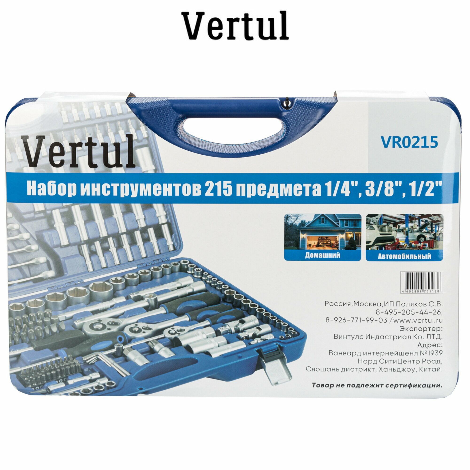 VERTUL VR0215 Набор инструментов Vertul 215 предметов 1 4, 3 8 1 2
