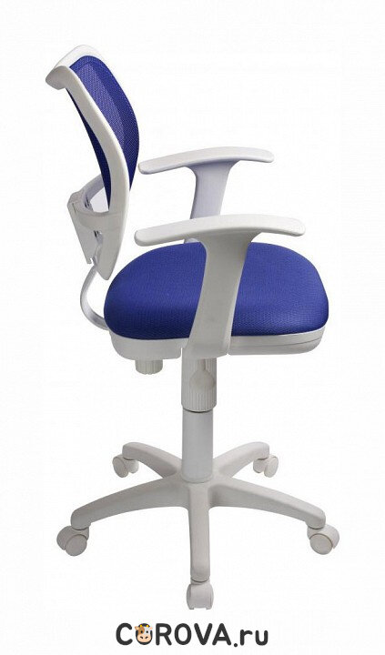 Кресло Бюрократ с подлокотникам синий спинка сетка белый пластик CH-W797/BL/TW-10