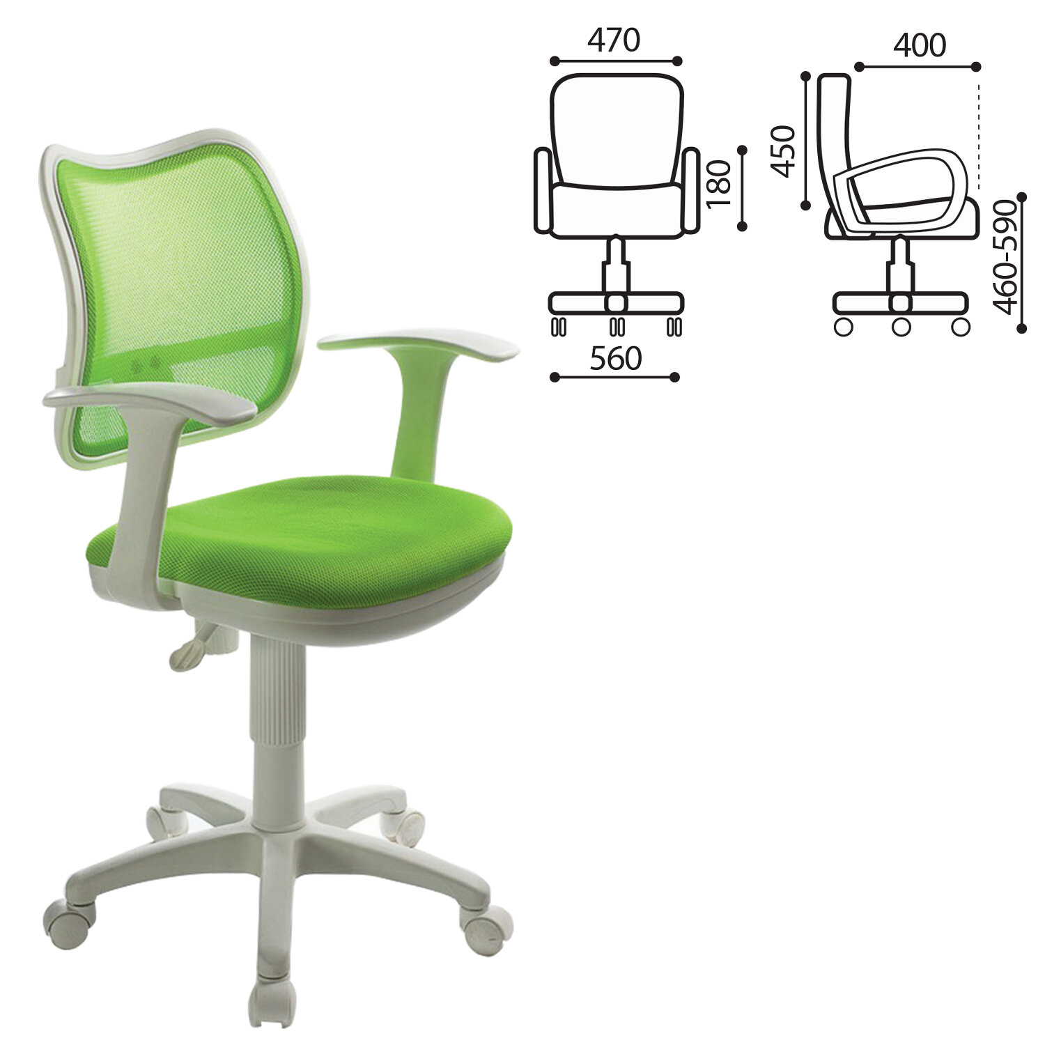 Кресло детское "Бюрократ" Ch-W797, салатовый TW-18 сетка/ткань,крестовина пластик белый