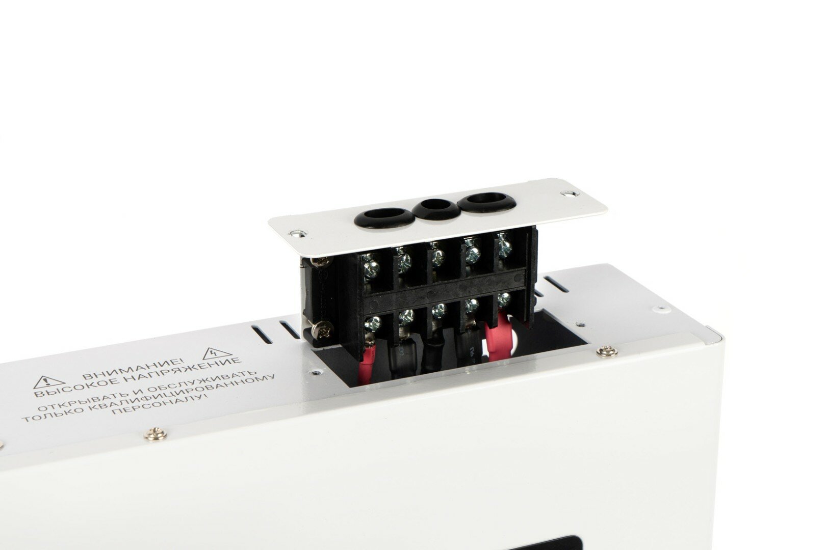 | Плюсы: | Очень внушительный вес, огромный медный трансформатор, надёжные реле с достаточным "запасом" по току, удобные доступы к колодкам под нормальные кольцевые клеммы. Внутренняя коммутация — на проводах 10мм, с некоммутируемыми рабочим нулём, всё сделано очень аккуратно и качественно. Возможность повернуть экран на 90 градусов, и повернуть верхнюю крышку так, чтобы и все показания читались штатно, и надписи были не "вверх ногами". Штатные выступы для горизонтального размещения либо крепления на стену — прекрасно "работают" в качестве кабель-органайзеров.