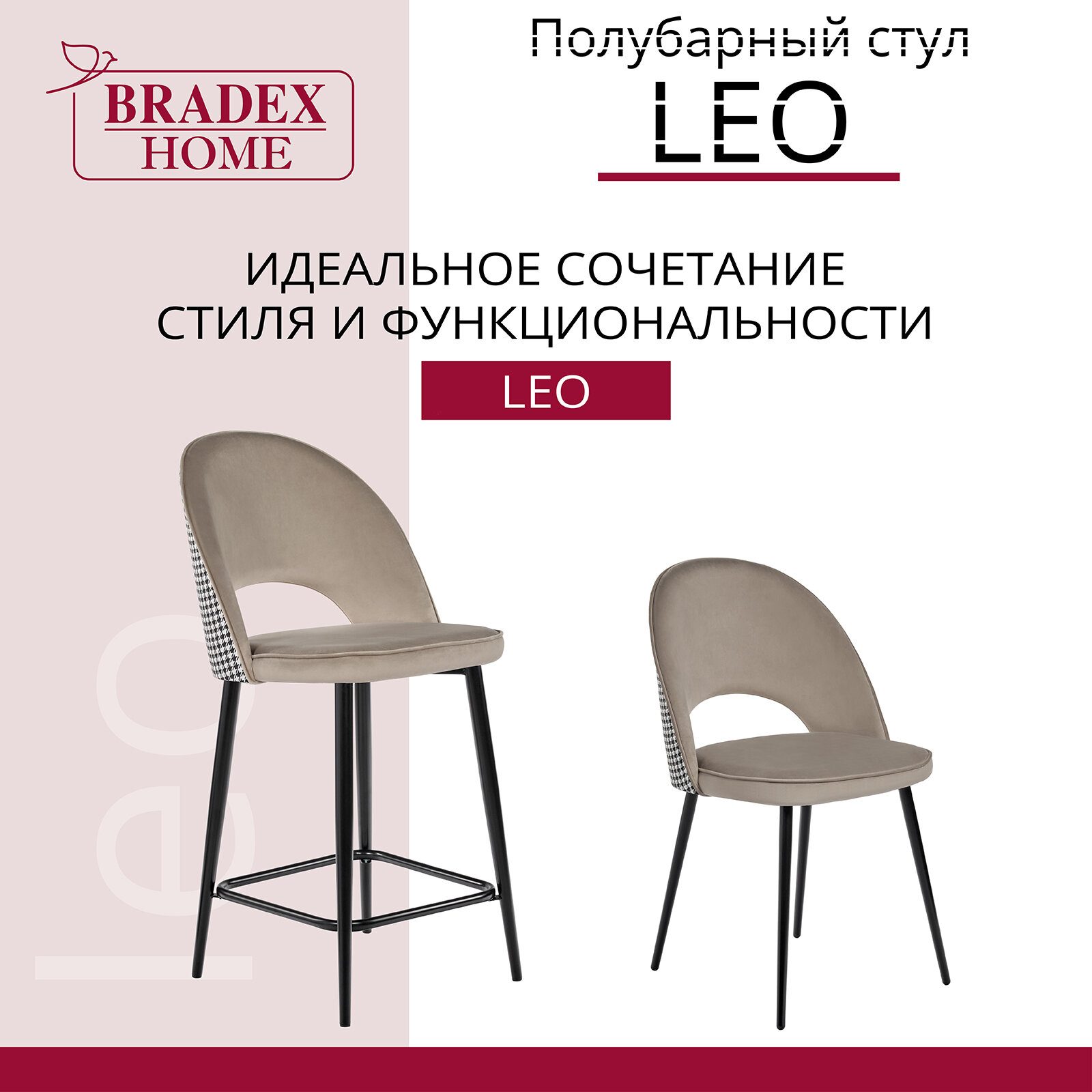 Стул полубарный Bradex Leo латте с жаккардом (RF 0268)