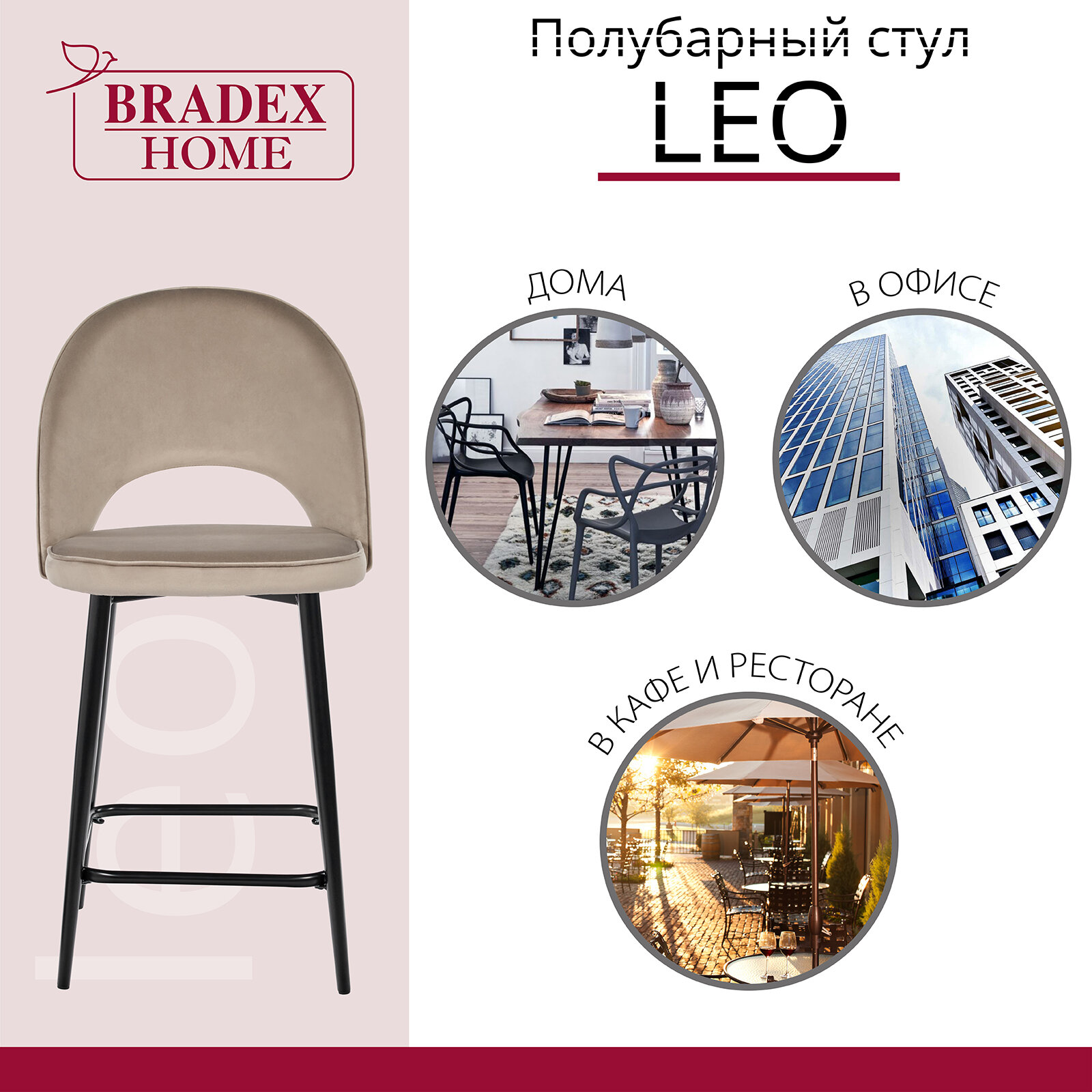 Стул полубарный BRADEXHOME Leo Кофейный Размеры: Высота 990мм Глубина 490мм Ширина 560мм