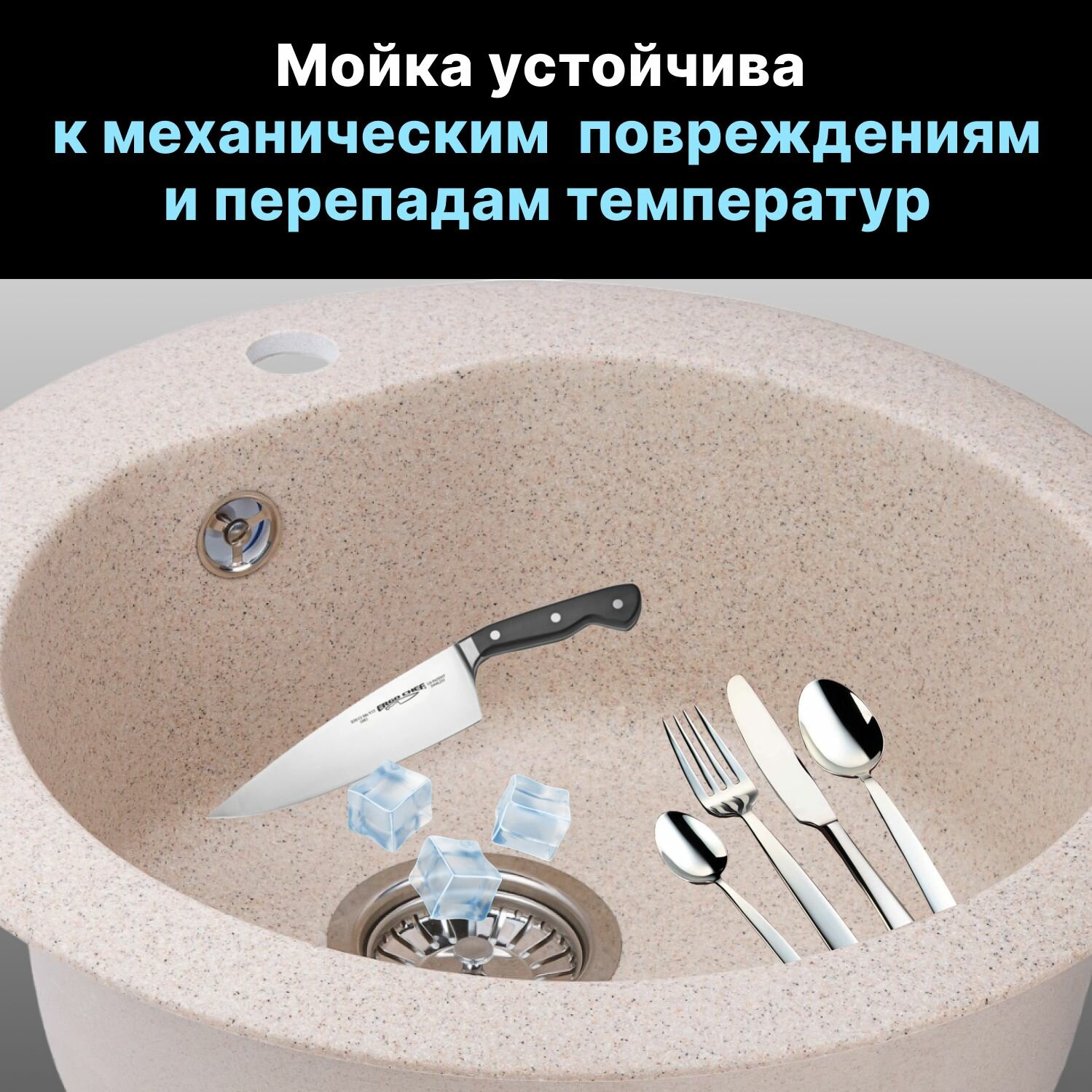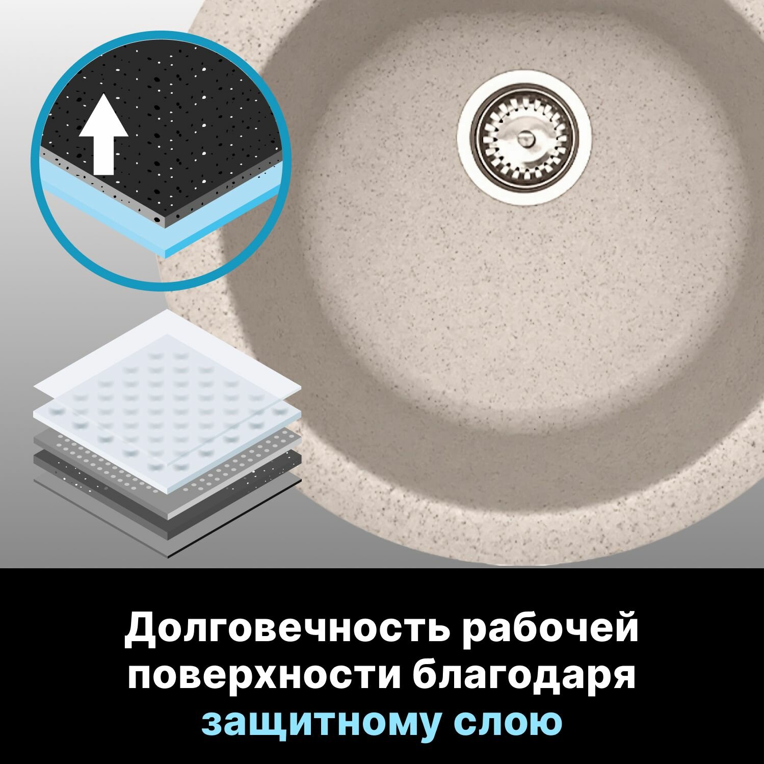 Кухонная мойка Карельский камень модель 150 (575*470) Q6 Слоновая кость