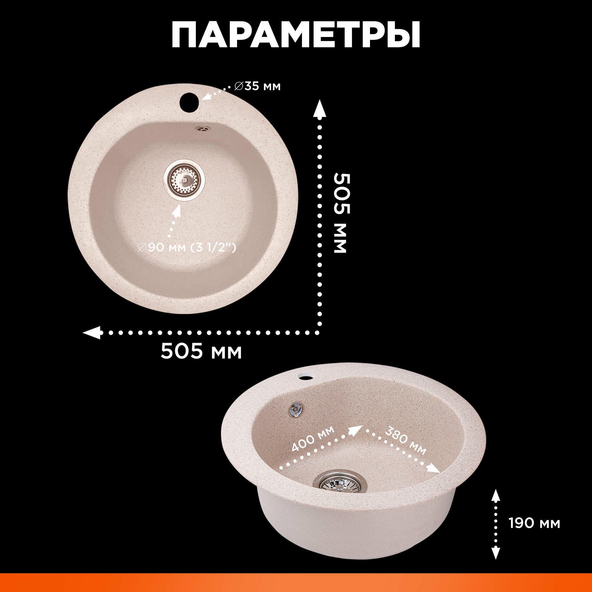 СохранитьМойка кухонная из искусственного камня GOLD гранит 505х505 mm, AV Engineering (AV510000GGTA) интересное: