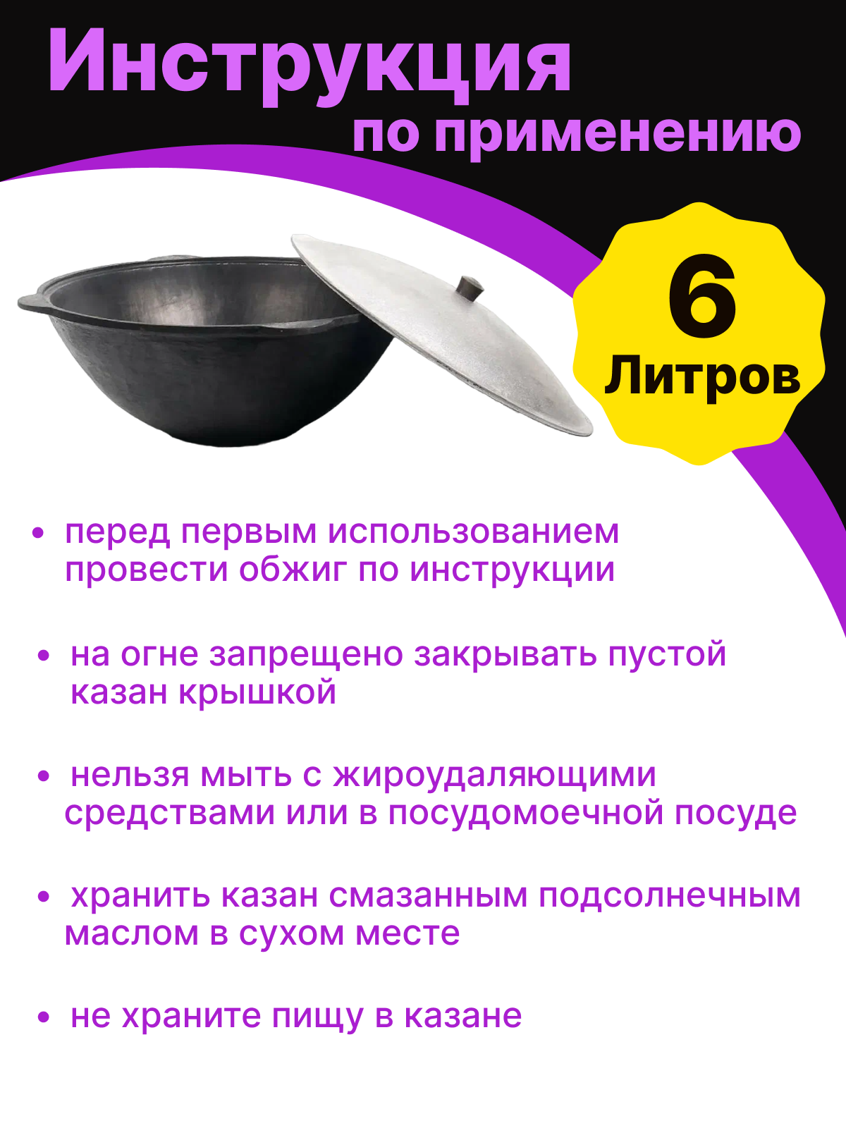 Казан чугунный Узбекский Наманган 6 л. плоское дно с крышкой в комплекте интересное: