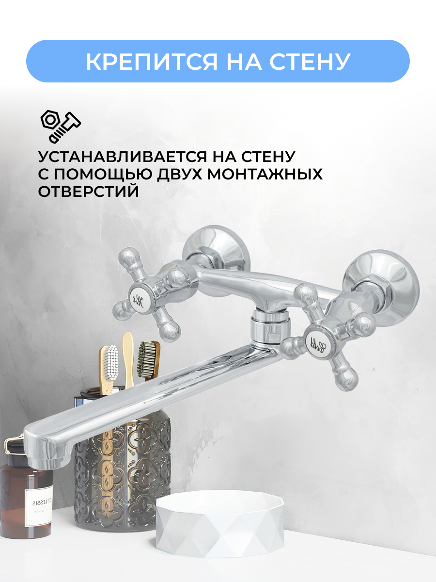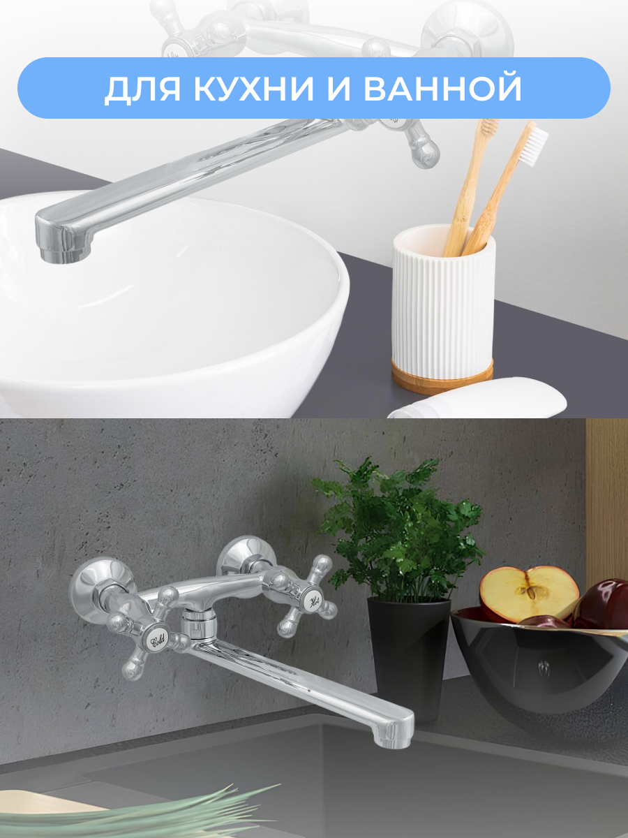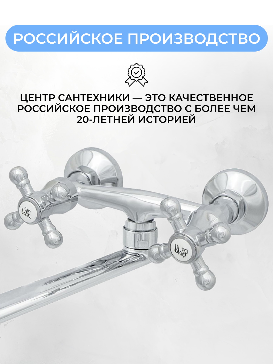 Смеситель для кухни Центр Сантехники Стандарт Крест ЦС-СМ 294 К, настенный, двухвентильный, хром интересное: