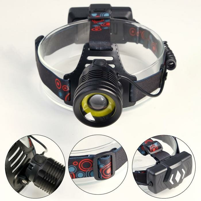 Фонарь налобный аккумуляторный 10 Вт, 2х1200 мАч, USB, T6, COB, zoom интересное: