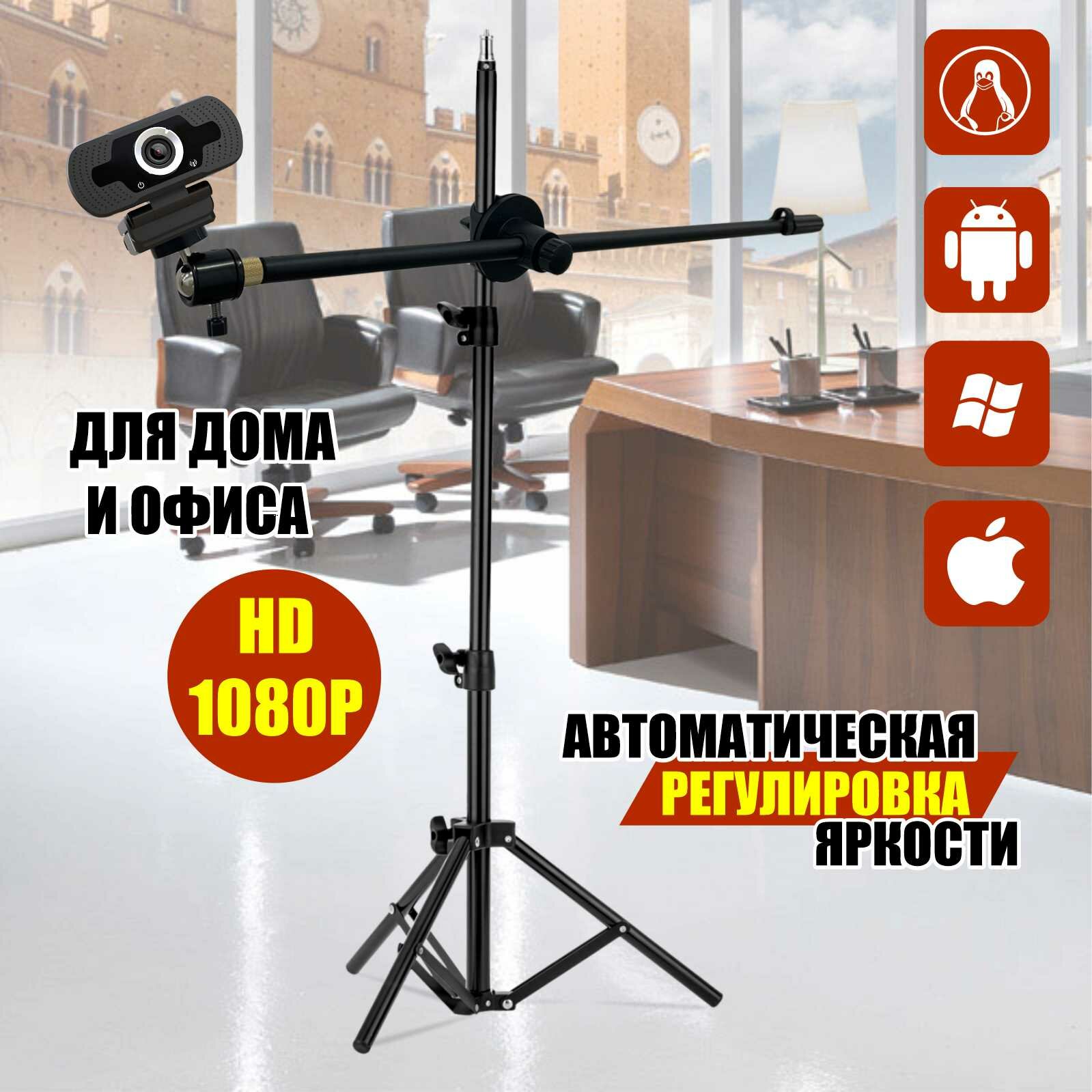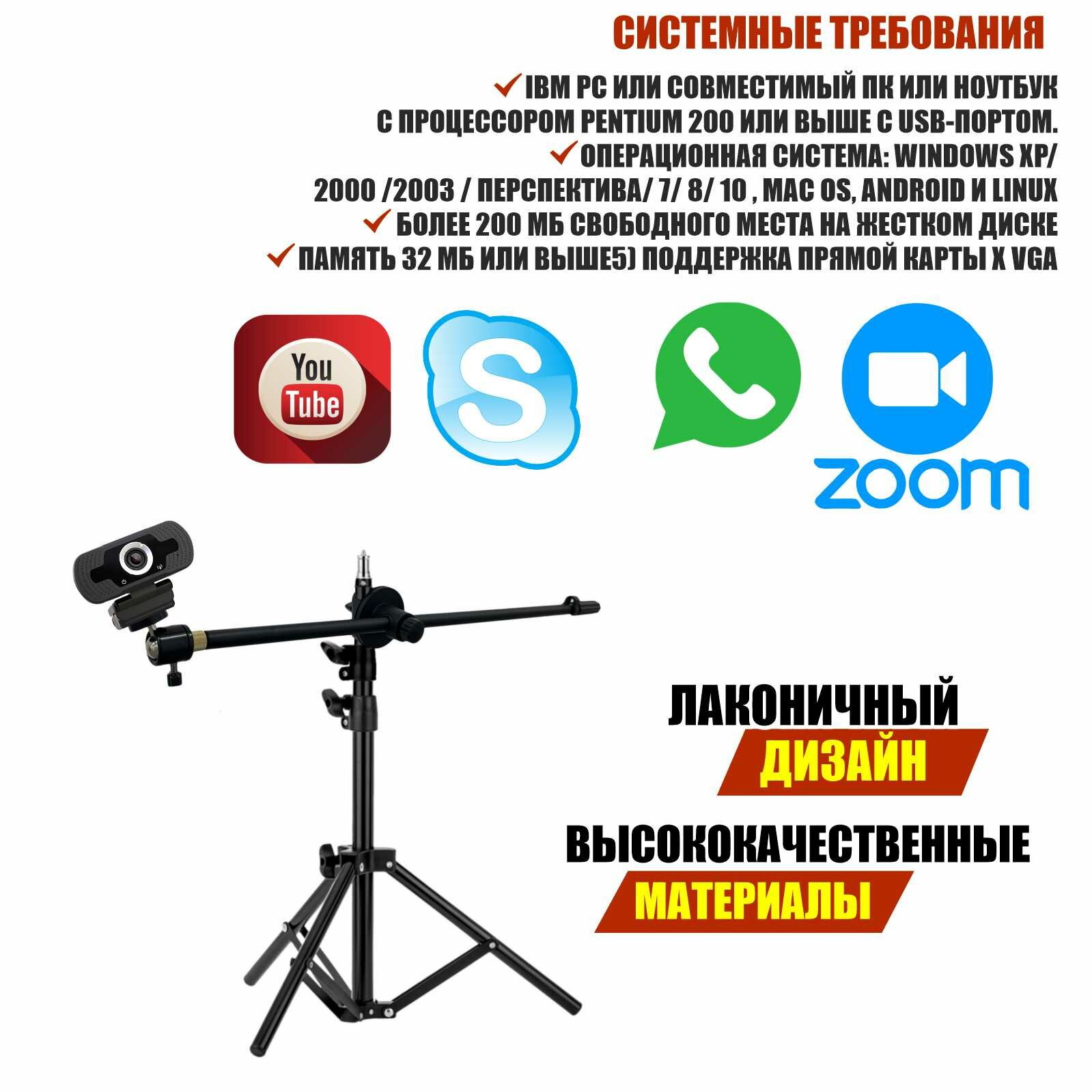 Веб-камера Full HD 1080P WEB-ZK-Pro со встроенным микрофоном на напольной стойке с журавлём для горизонтальной и вертикальной съемки интересное:
