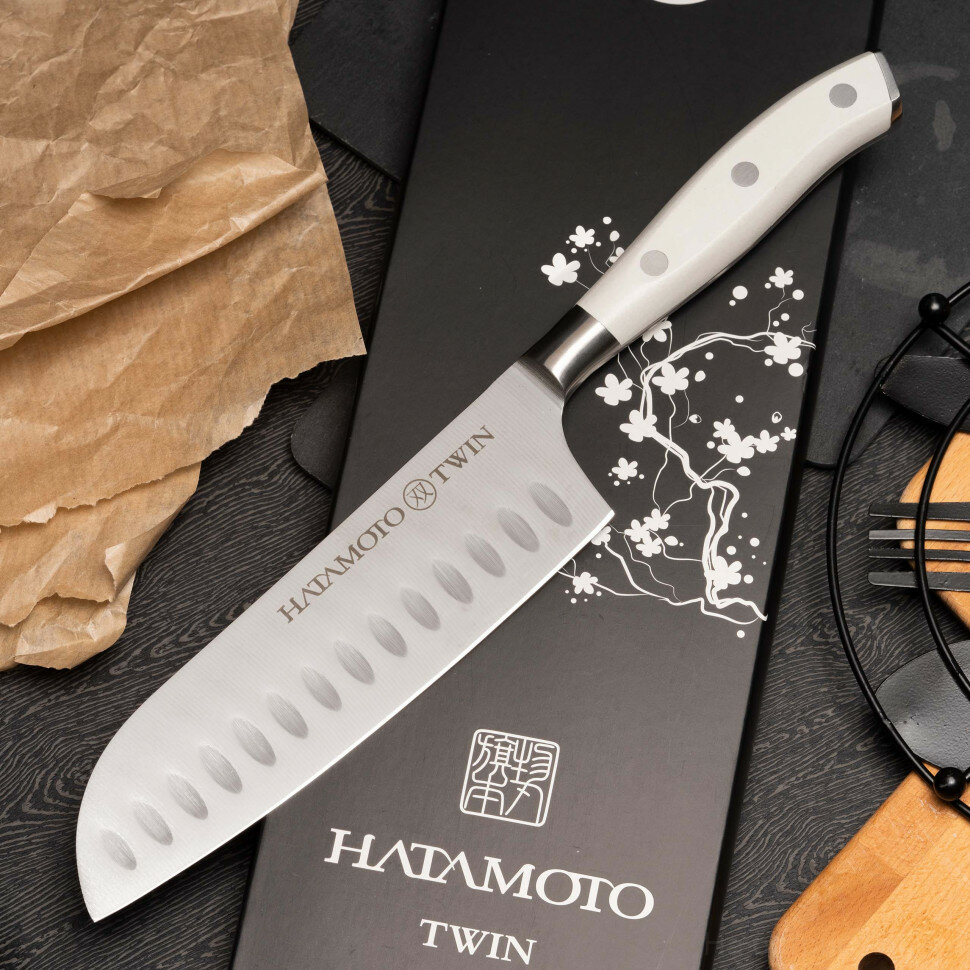 Японский Шеф Нож Сантоку Hatamoto TW-003B интересное: