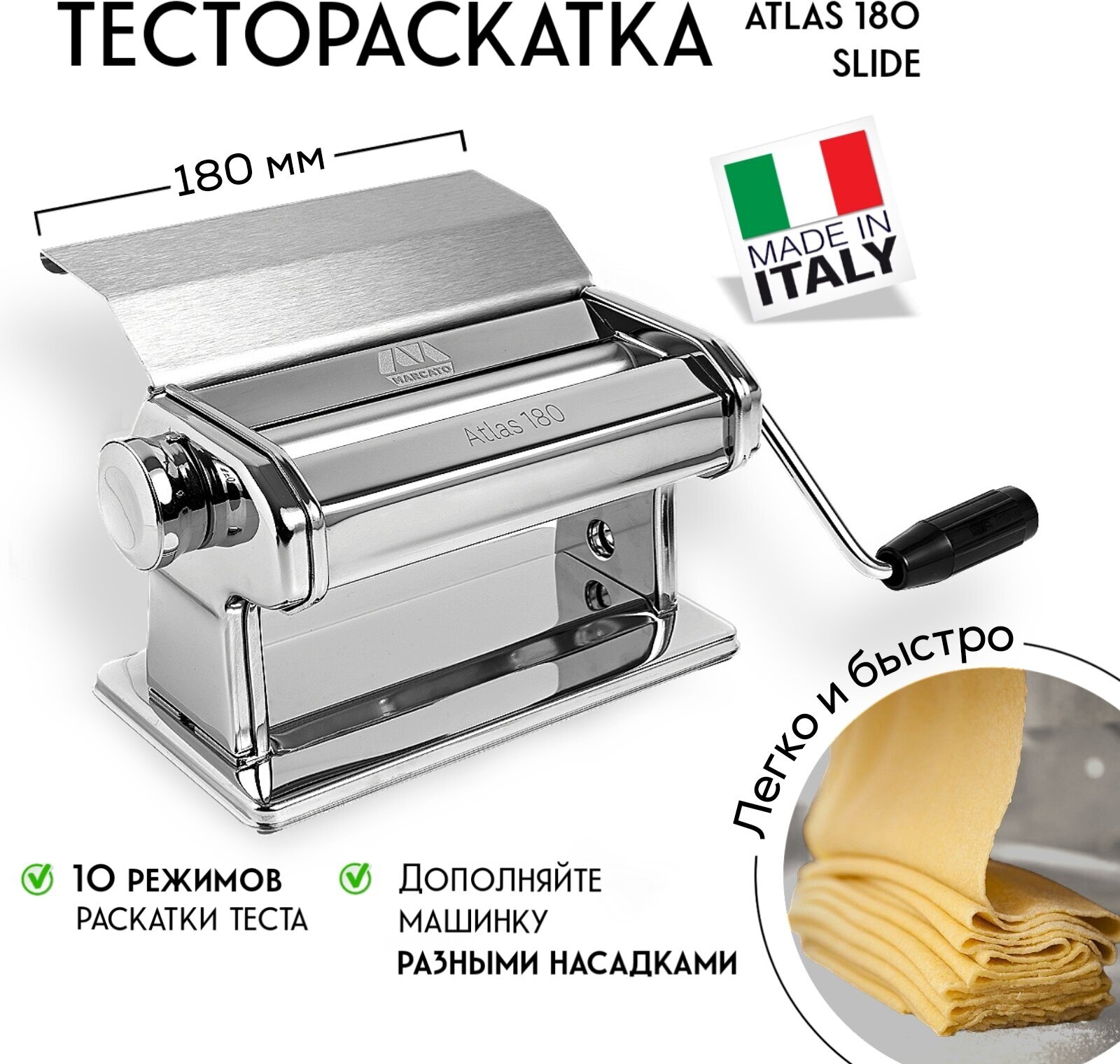 Машинка для раскатки теста Marcato Atlas 180 Slide ручная, ширина листа теста 180 мм интересное: