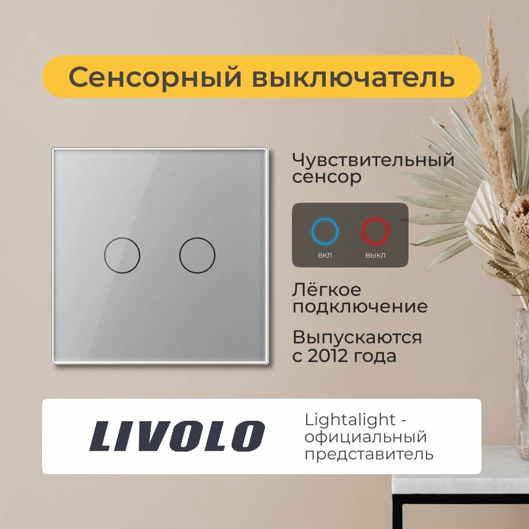 Выключатель сенсорный двухклавишный, 1 пост, цвет жемчужный LIVOLO ORIGINAL