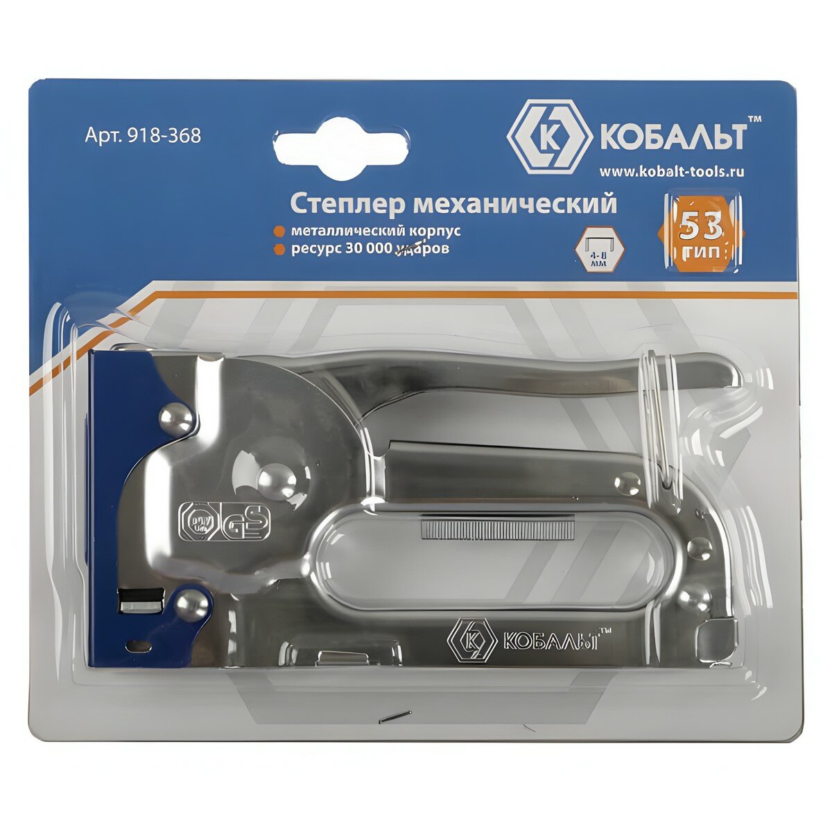 Степлер механический кобальт скобы 4-8 мм, тип 53, очень высокий ресурс (918-368)