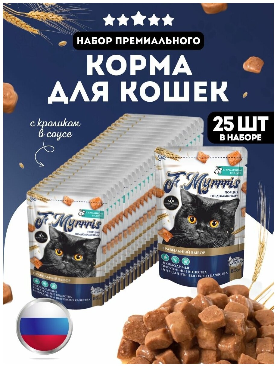Корм влажный для кошек с кроликом паучи - 25 шт F. Myrrris интересное: