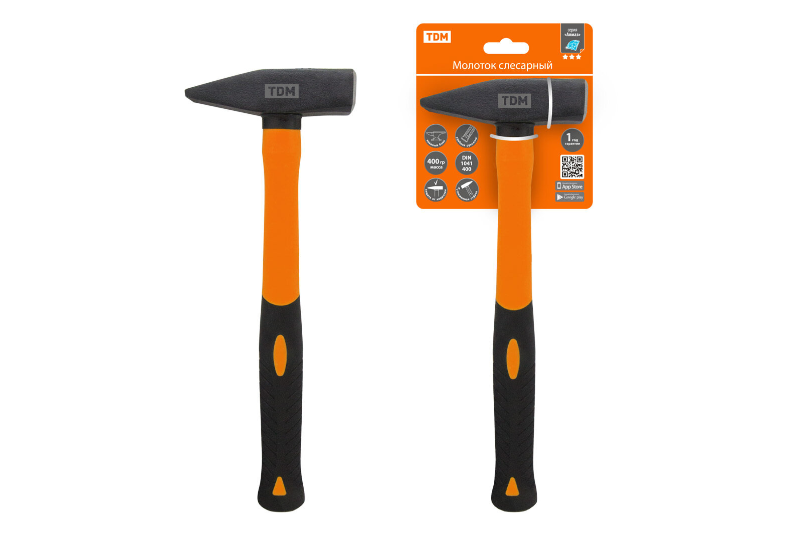 Купить TDM Молоток слесарный, 400 гр, кованый, с усилен. прорезиненной фиберглассовой рукояткой Алмаз