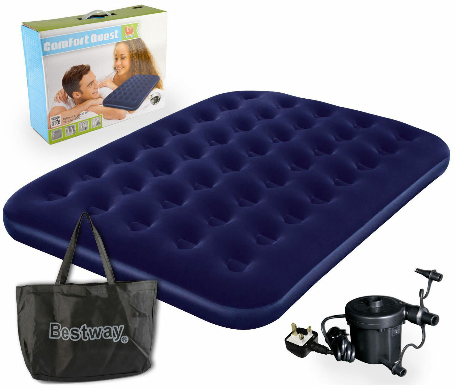 Матрас надувной Bestway 67287, 191x137x22 см , электронасос в комплекте (004427)