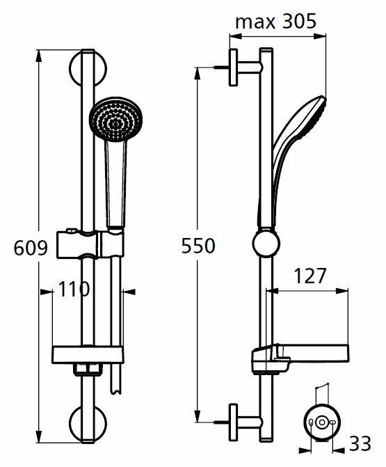 | Дополнительная информация | высота стойки для душа: 600 мм; диаметр душевой лейки: 80 мм |