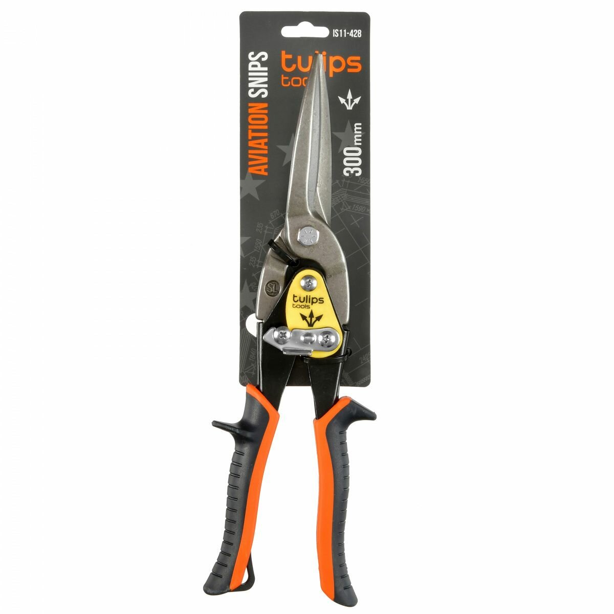 Длинные ножницы по металлу 300 мм Tulips tools прямые, закалка режущих кромок, двухкомпонентные рукоятки IS11-428