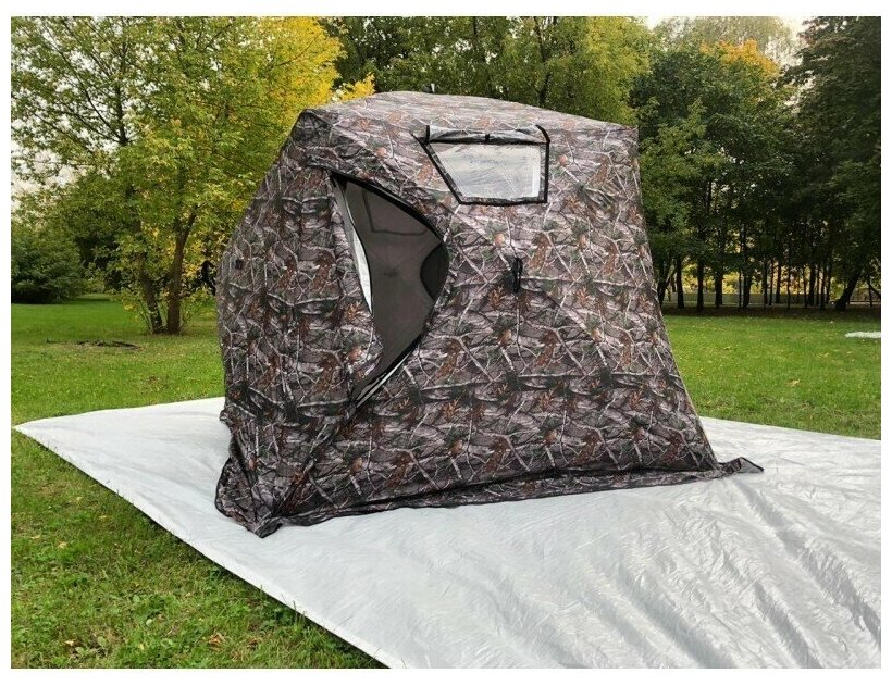 | Плюсы: | Вместительная, простая в эксплуатации. Прошла 3 охоты по 10 дней. Не советую использовать с печкой, белый утеплитель в районе трубы весь почернел. На сборы 5 минут |