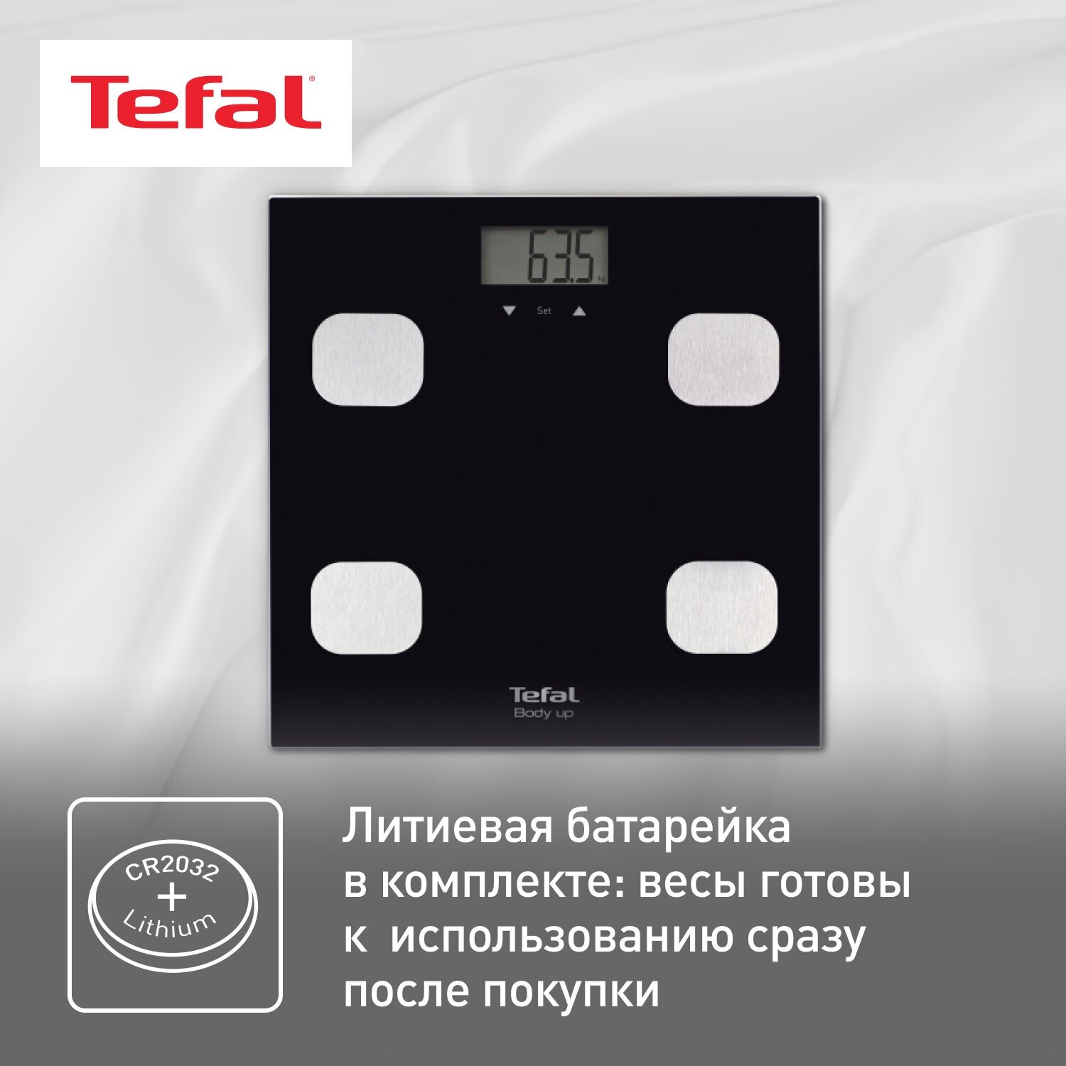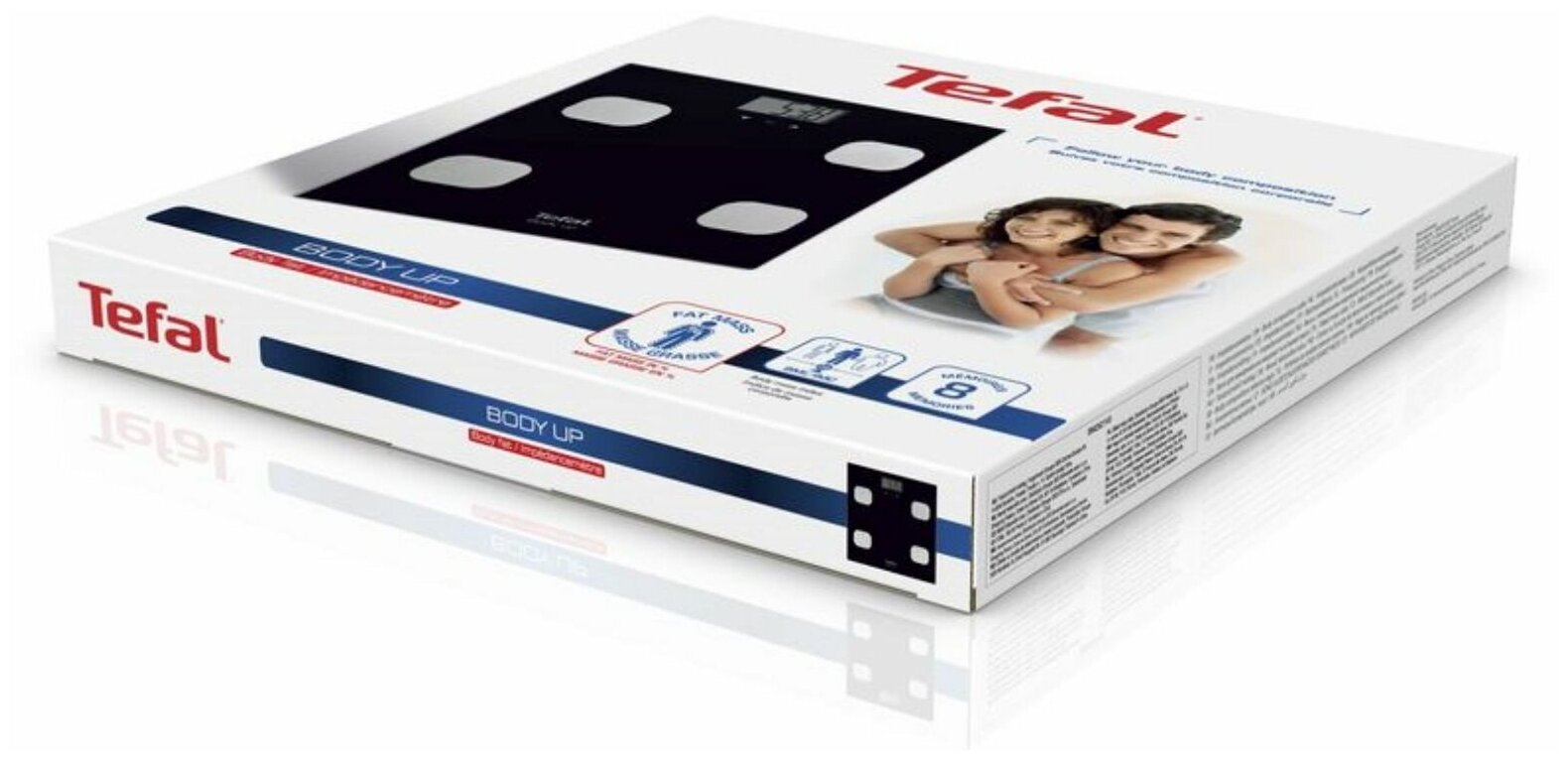 Напольные весы Tefal Body Up BM2521V0, черный, максимальный вес 150 кг, цифровой дисплей, автовключение, до 8 пользователей, весы отображают вес, процент жировой массы и индекс массы тела