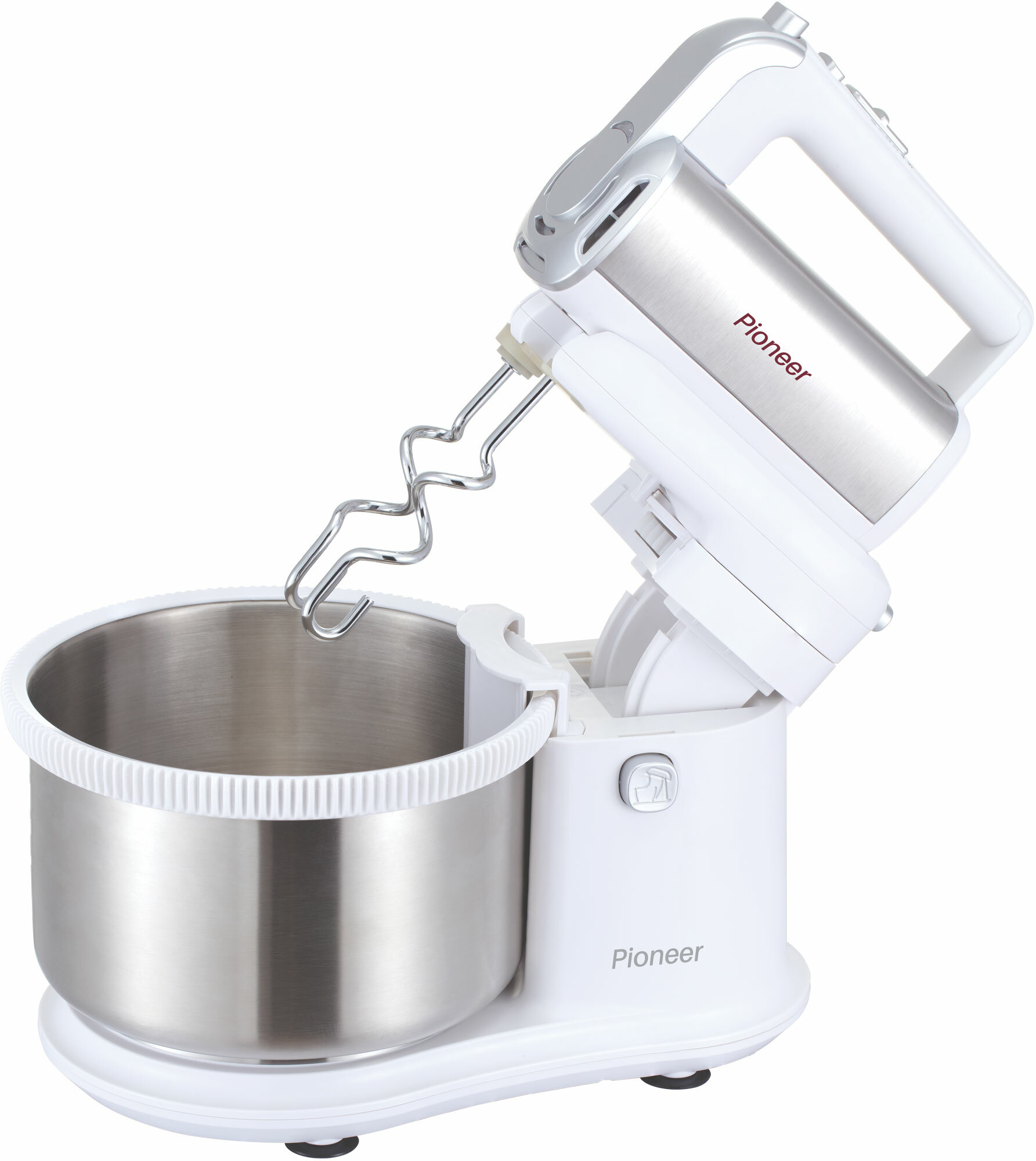 Купить Миксер ручной Pioneer с вращающейся стальной чашей 4 литра, 5 скоростей, режим турбо, эффективная система охлаждения, 4 насадки, 450 Вт