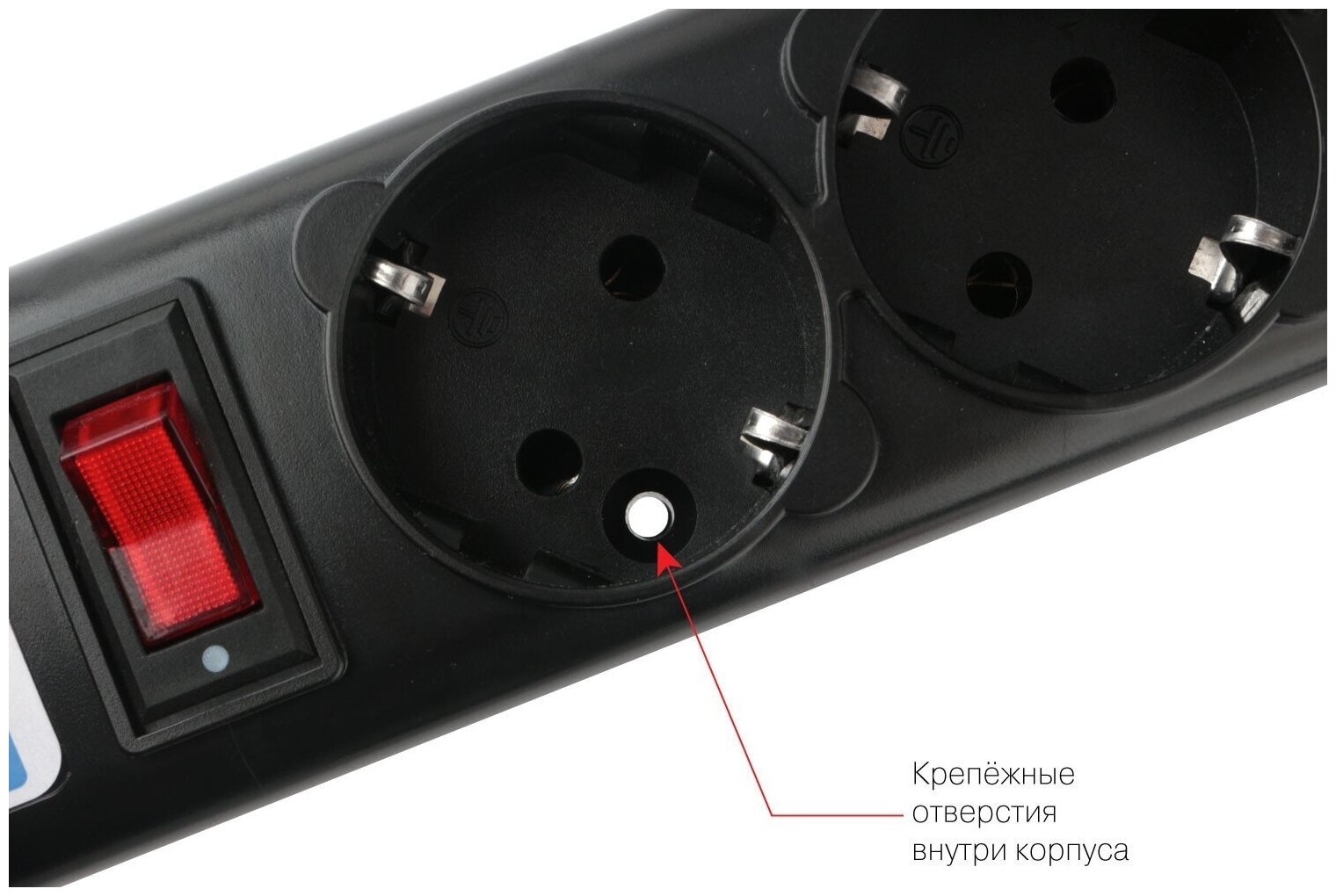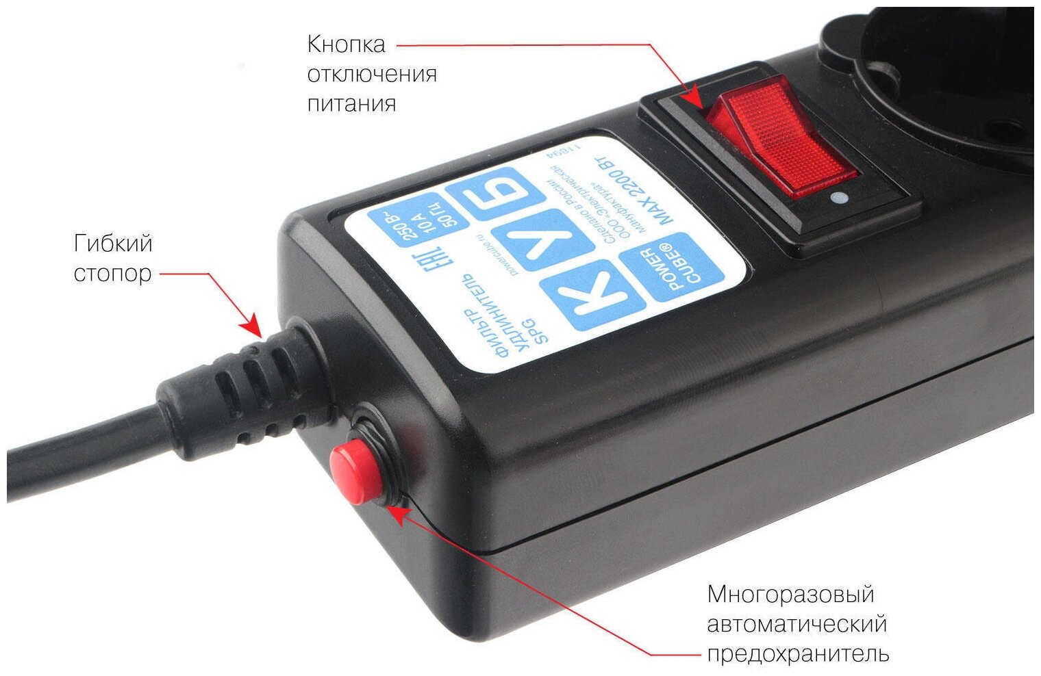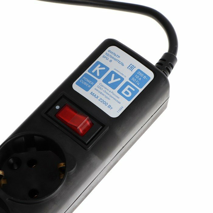 Сетевой фильтр "КУБ", 5 розеток, 10 м, 10 А, 2200 Вт, черный 9417187