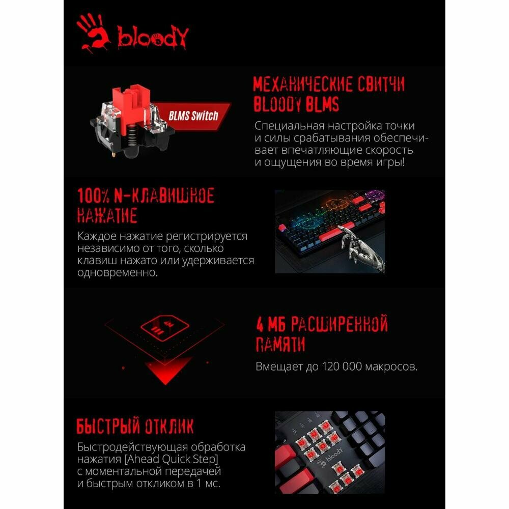Клавиатура A4Tech Bloody S98, механическая, черный/красный, USB, RGB