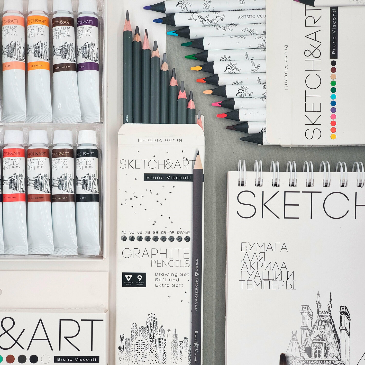 Набор простых чернографитных карандашей Bruno Visconti "Sketch&Art" 9 штук