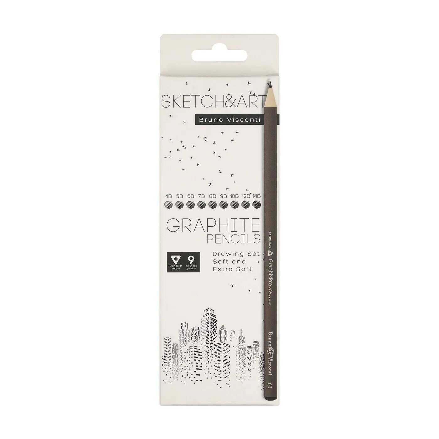 Набор чернографитных (простых) карандашей Bruno Visconti Sketch&Art (4B-14B, трехгранные) 9шт.