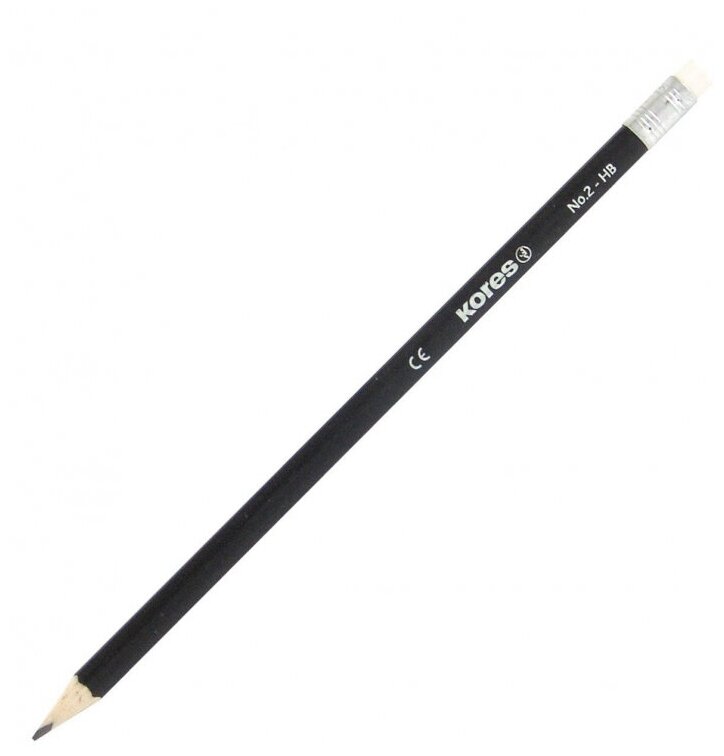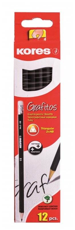 Карандаш чернографитный Kores трехгранный, HB, с ластиком