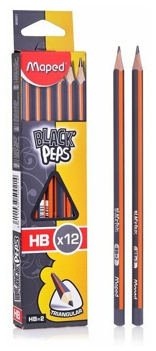 Набор карандашей чернографитных MAPED, 12 шт., "Black Pep's", НВ, трехгранные, без резинки, 850021 (арт. 180878)