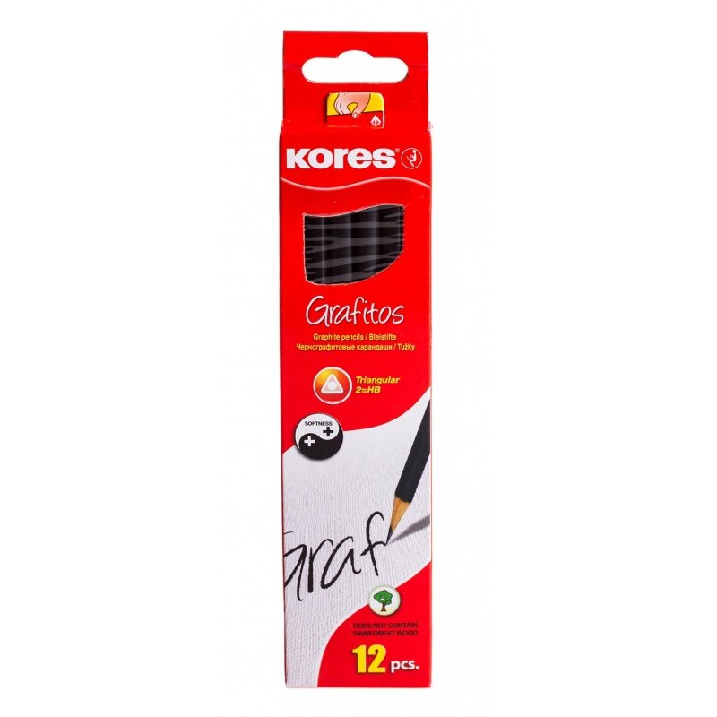 Карандаш чернографитный KORES трехгранный HB без ластика 92301 интересное: