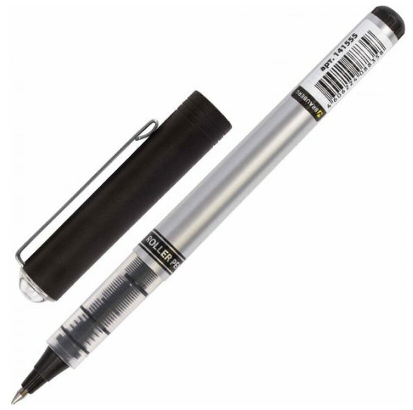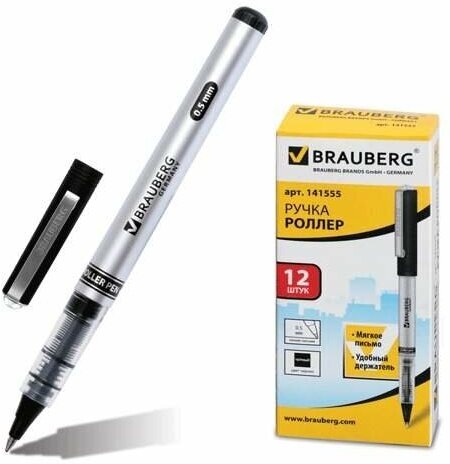 Ручка-роллер BRAUBERG "Flagman", черная, корпус серебристый, хромированные детали, узел 0,5 мм, линия письма 0,3 мм, 141555 В комплекте: 12шт.