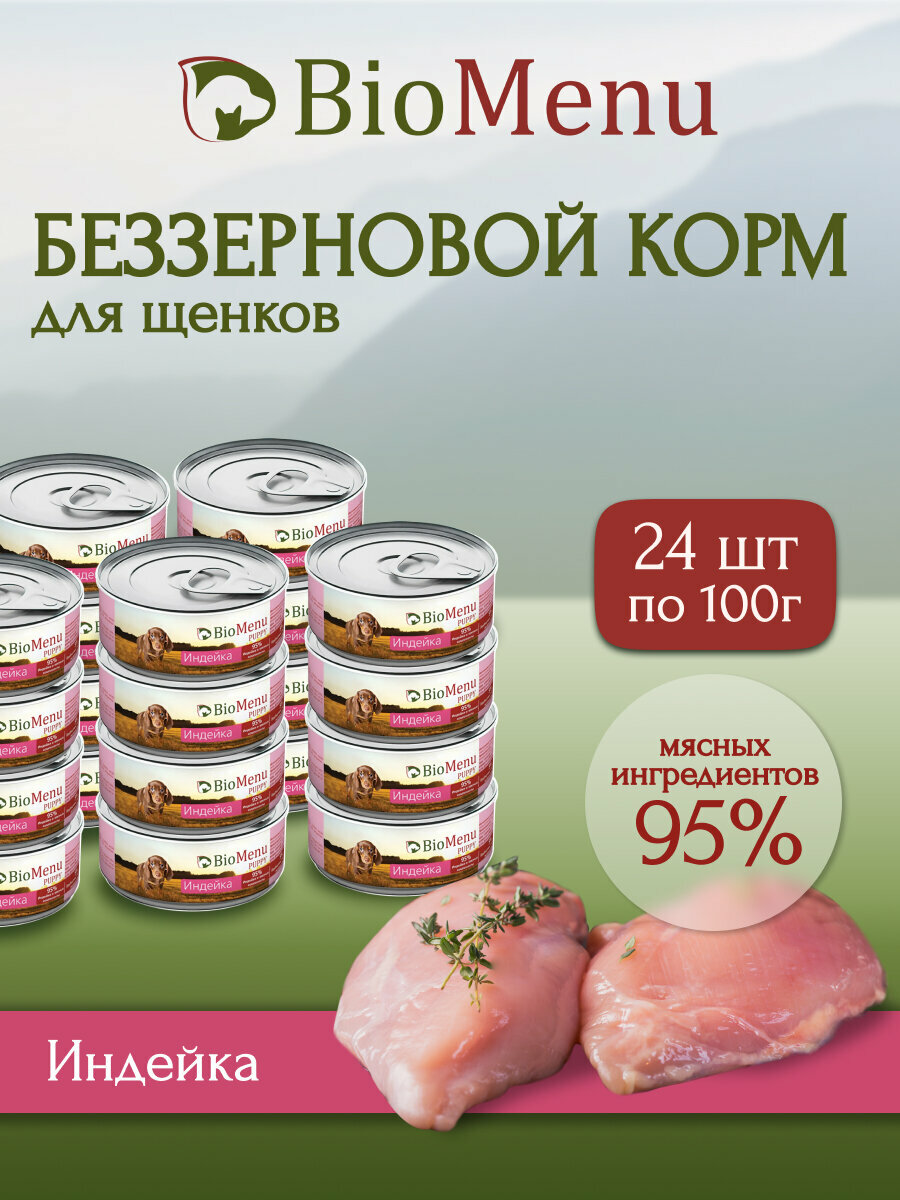 Купить BioMenu PUPPY Консервы д/щенков Индейка 95%-мясо 100гр x 24 шт