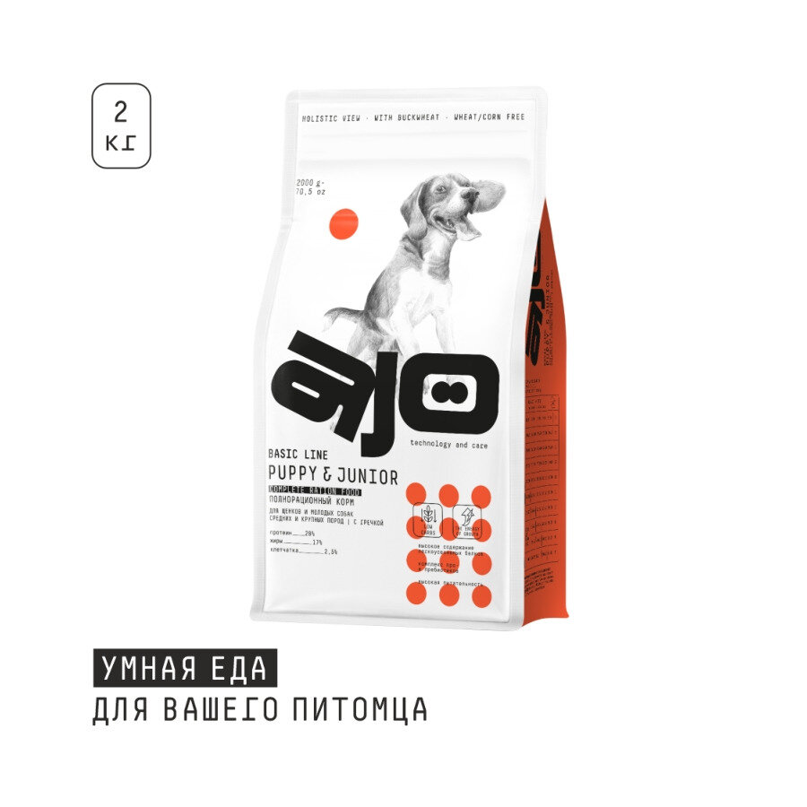 Купить Сухой корм AJO Dog PUPPY & JUNIOR с гречкой для щенков и молодых собак средних и крупных пород 2 кг
