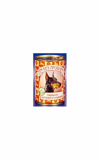 Ем без проблем консервы для собак Говядина с курицей и индейкой,410 г,2 шт
