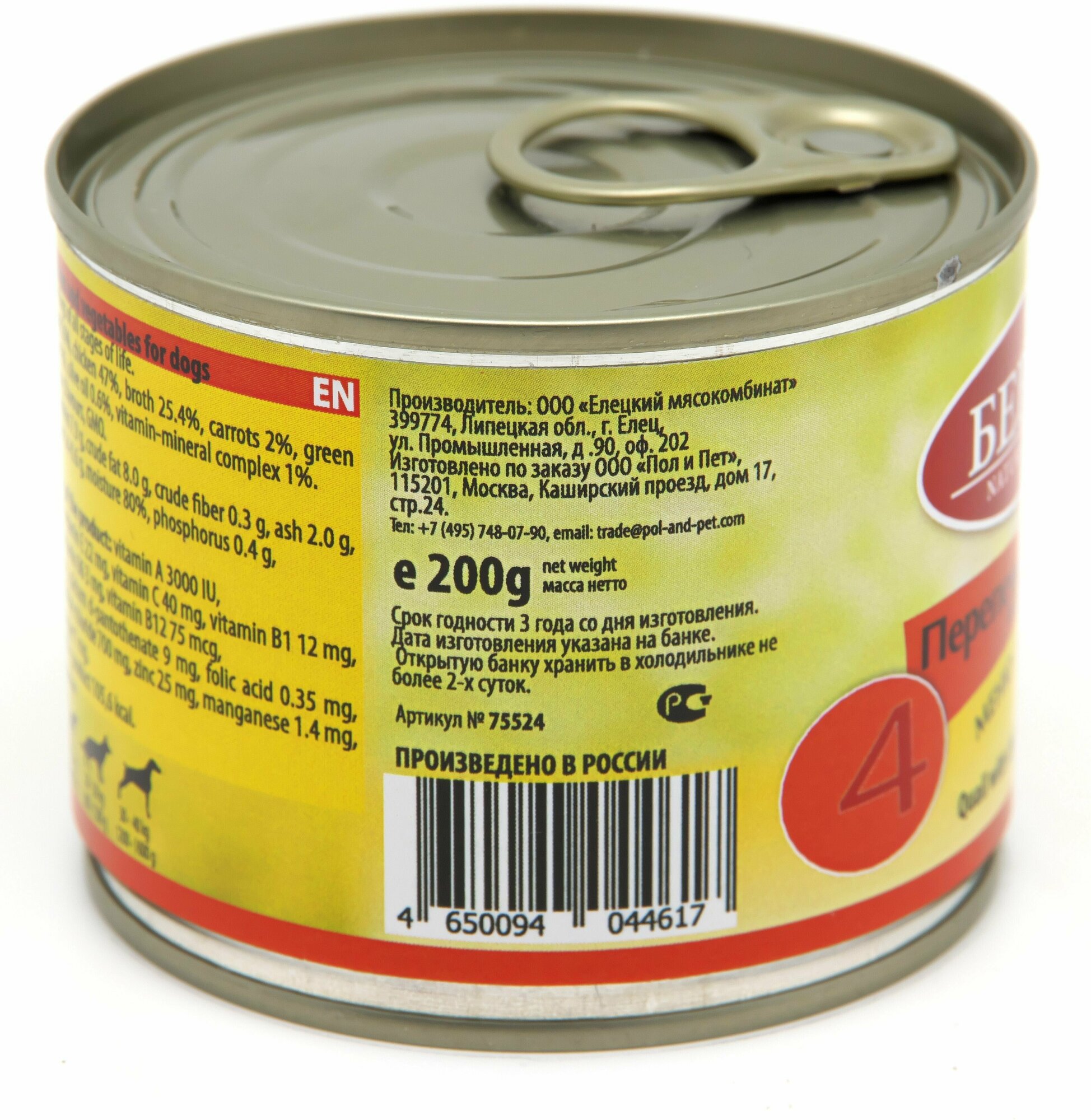 Консервы Беркли для собак 200г №4 перепелка с курицей и овощами (8 банок)