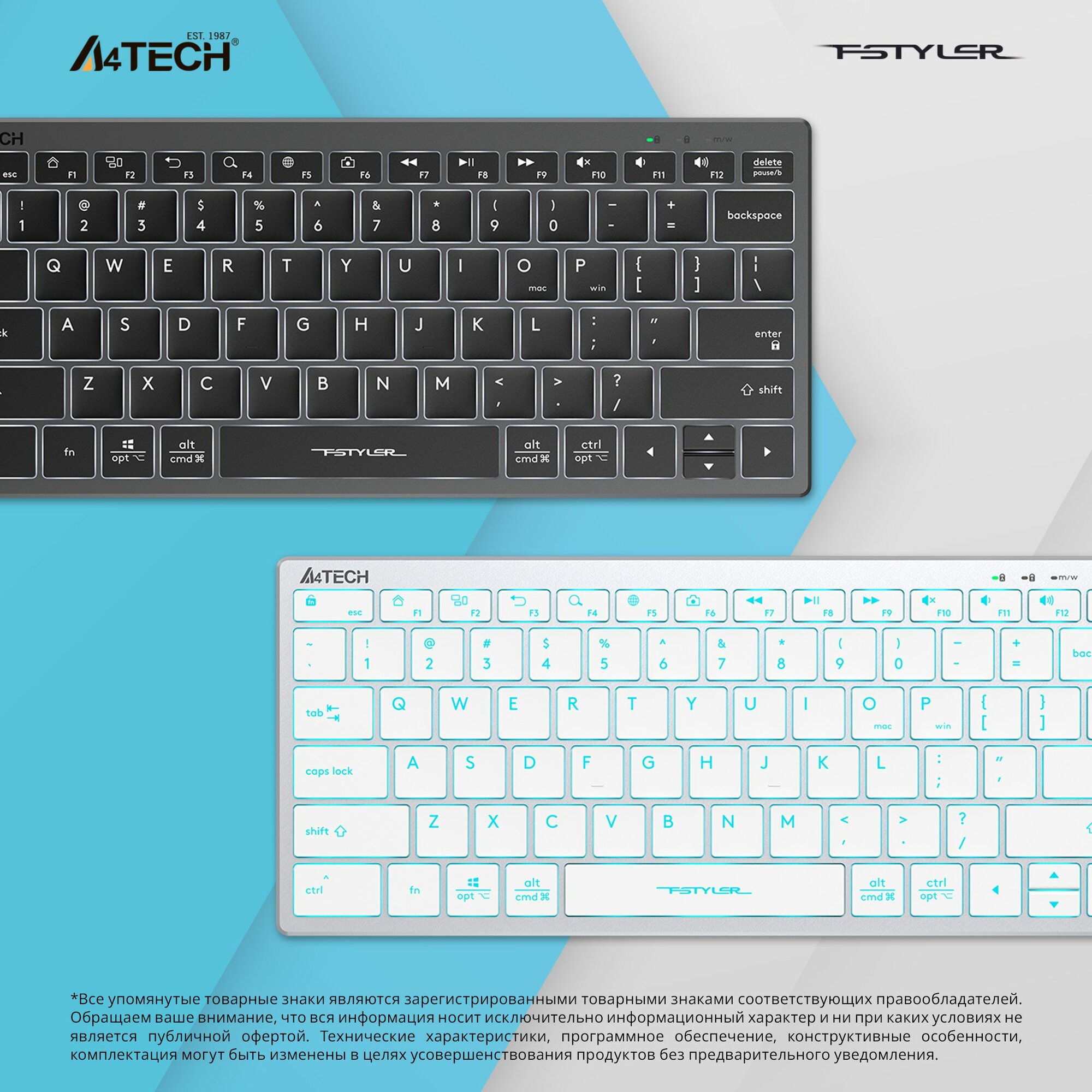 Клавиатура A4Tech Fstyler FBK11, USB беспроводная Bluetooth /2.4 ГГц, Slim, черный/серый белый/серый
