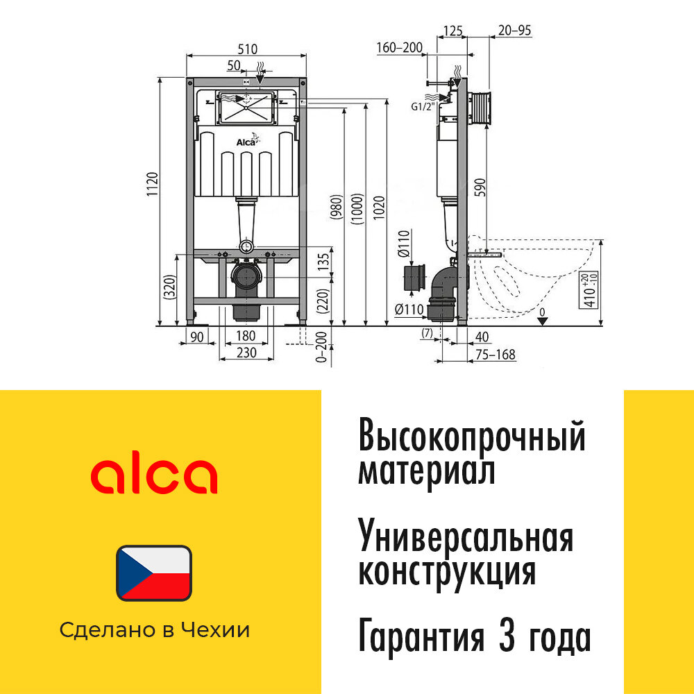 Инсталляция для унитаза ALCAPLAST с клавишей M570 интересное: