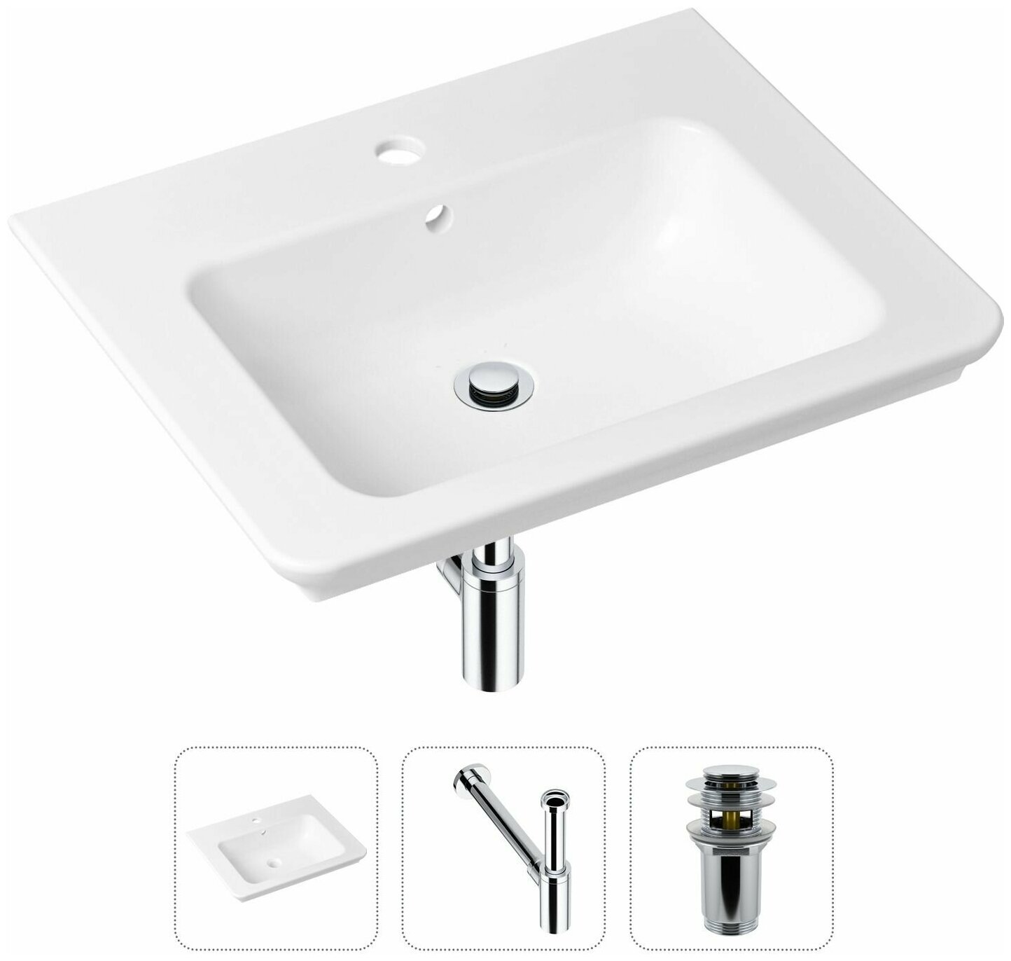 Купить Комплект 3 в 1 Lavinia Boho Bathroom Sink 21520383: врезная фарфоровая раковина 60 см, металлический сифон, донный клапан