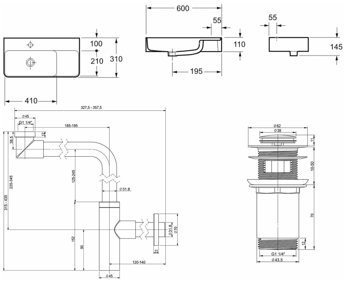 | Диаметр сливного отверстия | 45 мм |