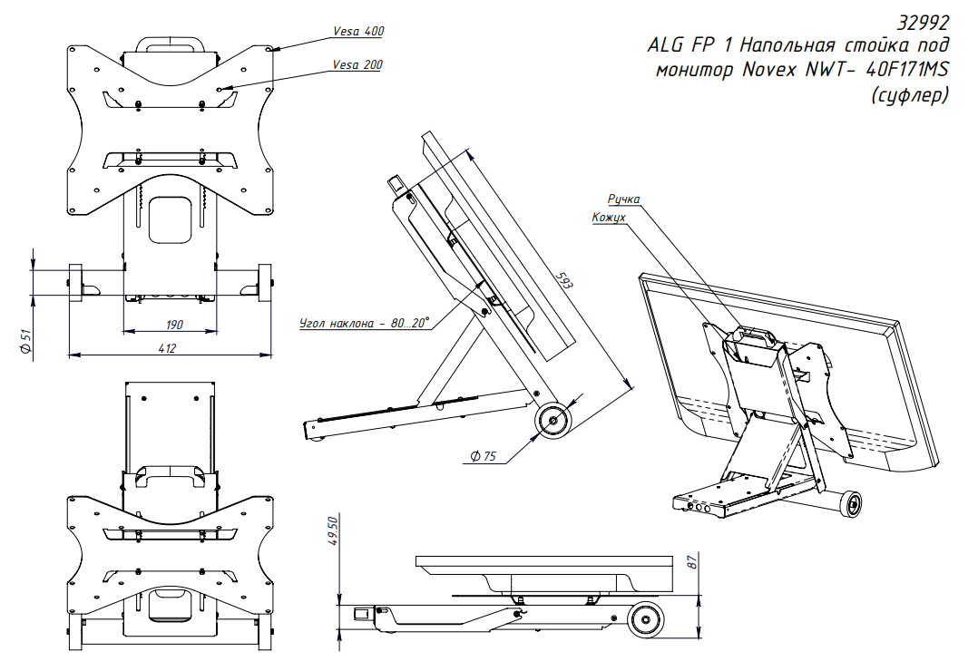 Аллегри FP 1 Напольная стойка под монитор (суфлер) интересное:
