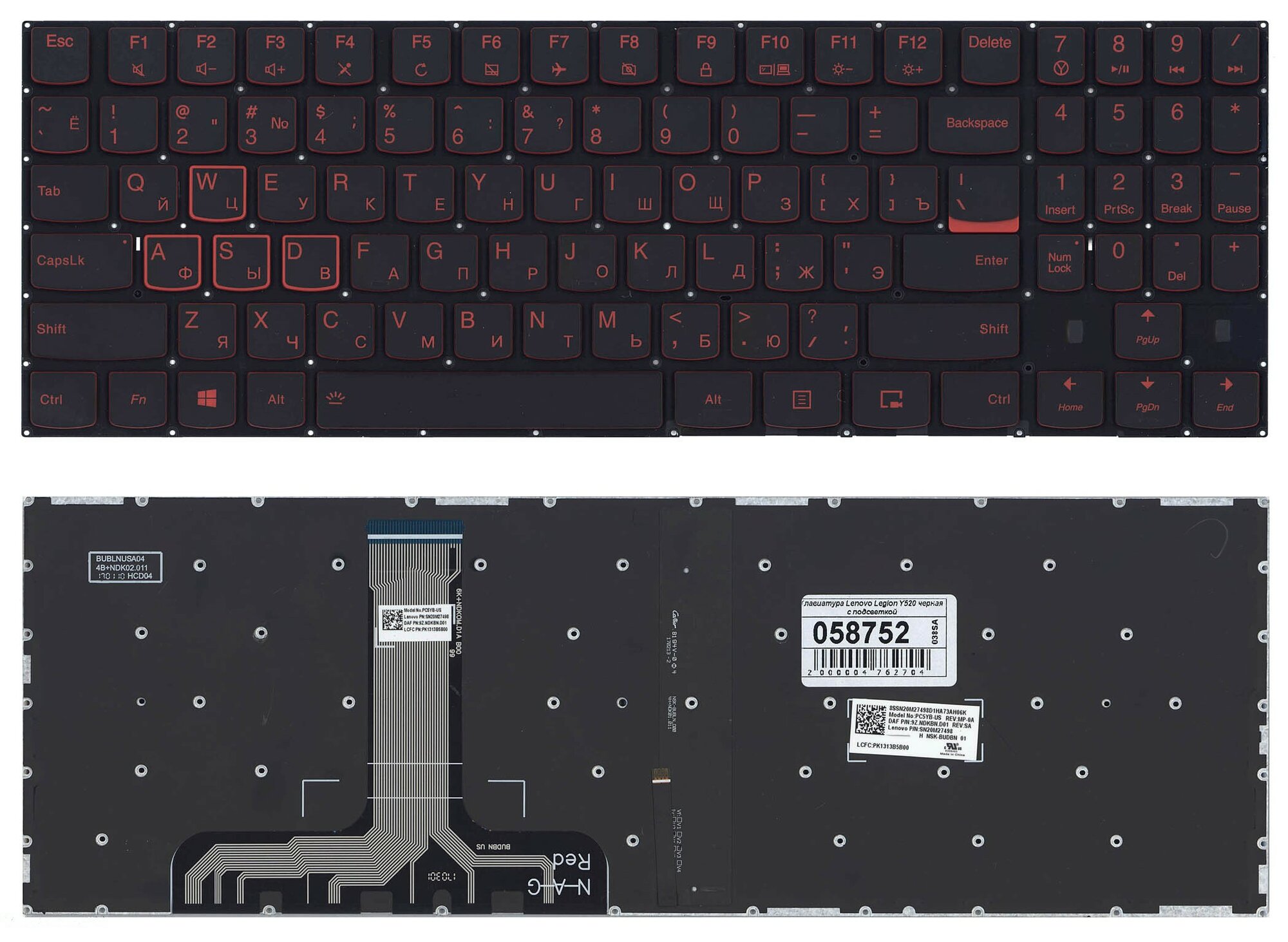 Клавиатура для ноутбука Lenovo Legion Y520-15IKBN черная без рамки, красная подсветка интересное: