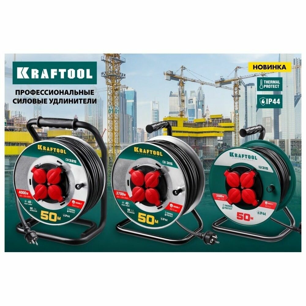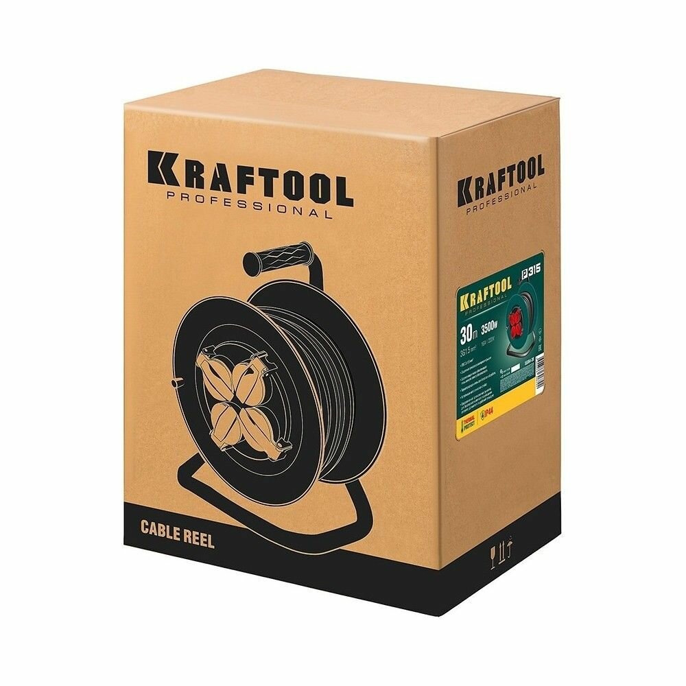 KRAFTOOL P-315 удлинитель на катушке, 30 м, 3500 Вт, 4 гнезда, IP44, ПВС 3x1,5 кв мм, KRAFTOOL ( 55084-30 )