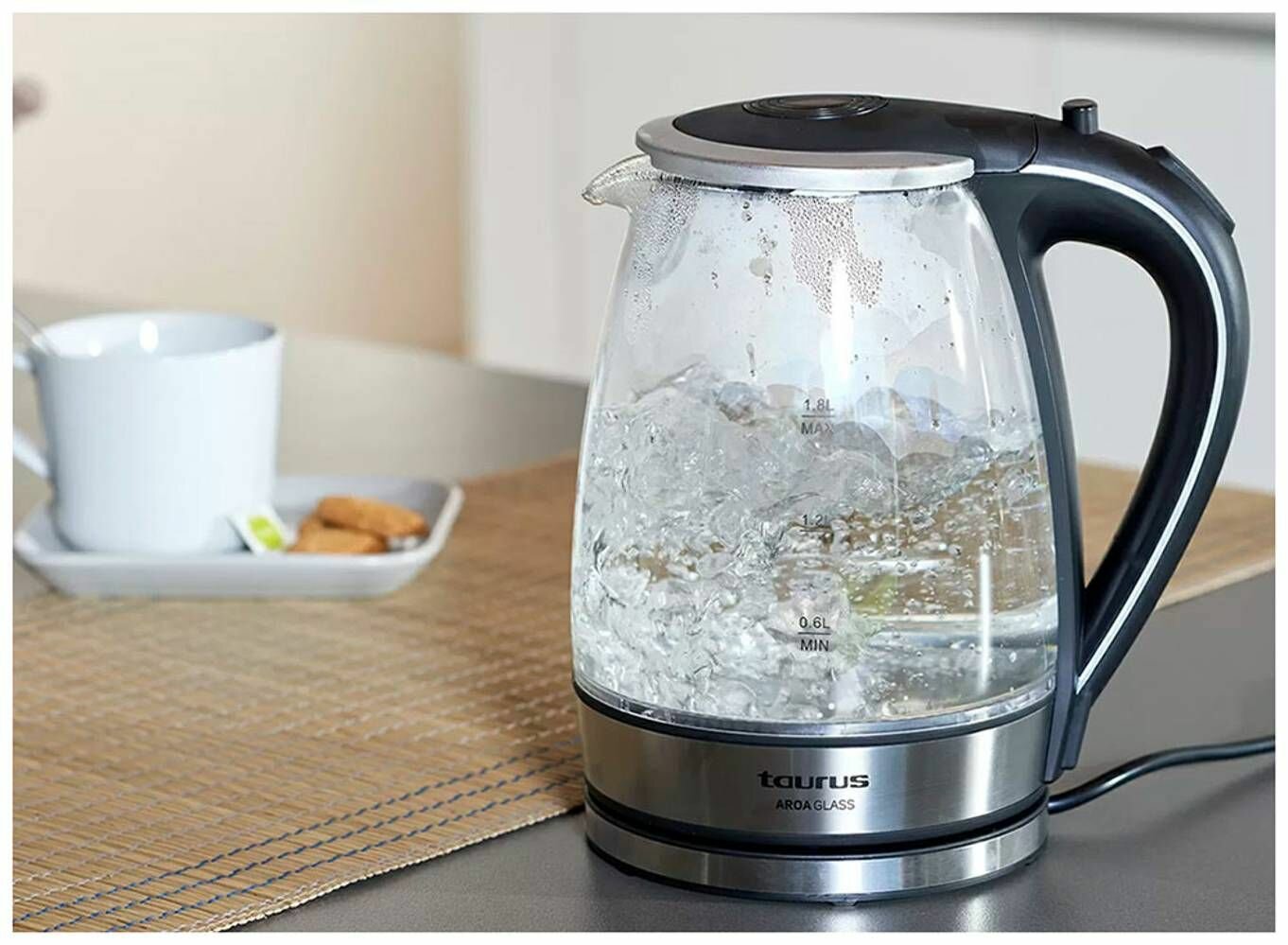 Чайник электрический Taurus Aroa Glass 2200 Вт серебристый чёрный 1.8 л пластик/стекло