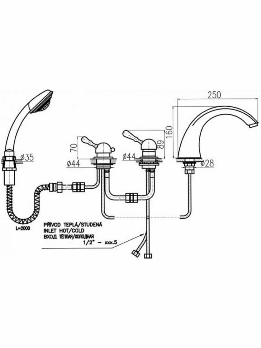 Смеситель на борт ванны Rav Slezak Labe L569.5PSM интересное:
