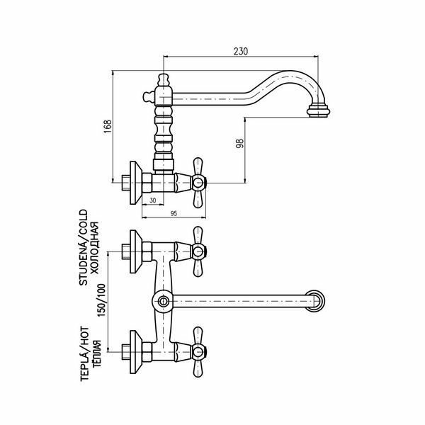 MK102.5/28SM MORAVA RETRO - смеситель кухонный настенный, цвет бронза RAV Slezak