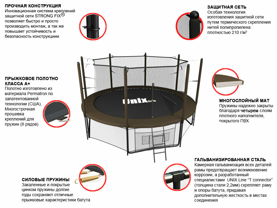 Батут UNIX line Black&Brown - 10ft 3,05м, внутренняя сетка интересное: