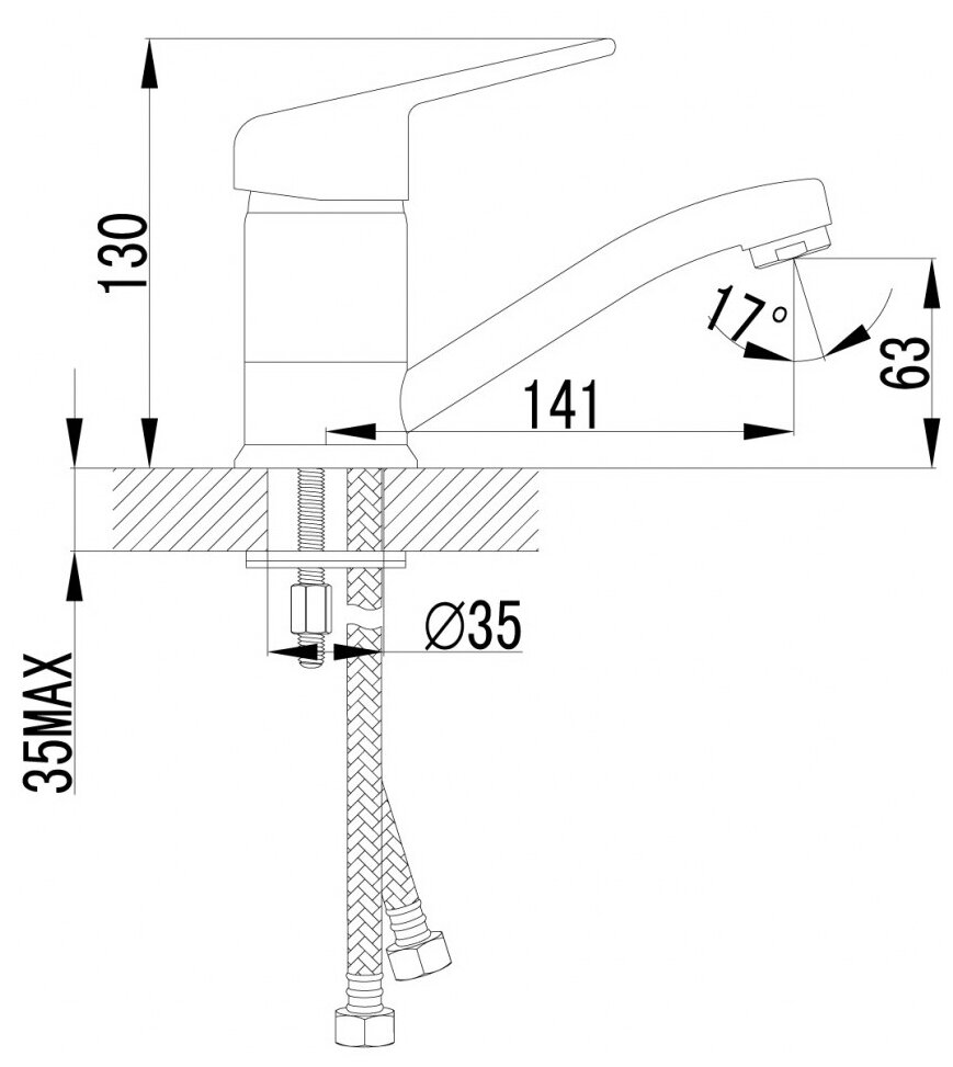 | Комплектация | смеситель - 1 шт., гибкая подводка для воды - 2 шт., комплект креплений - 1 шт., инструкция - 1 шт. |