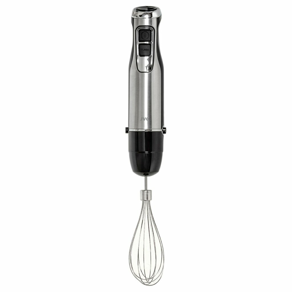 Блендер погружной JVC с венчиком для вспенивания молока-капучинатором, 3 насадки, 2 скорости, режим турбо, подсветка кнопки, 1200 Вт
