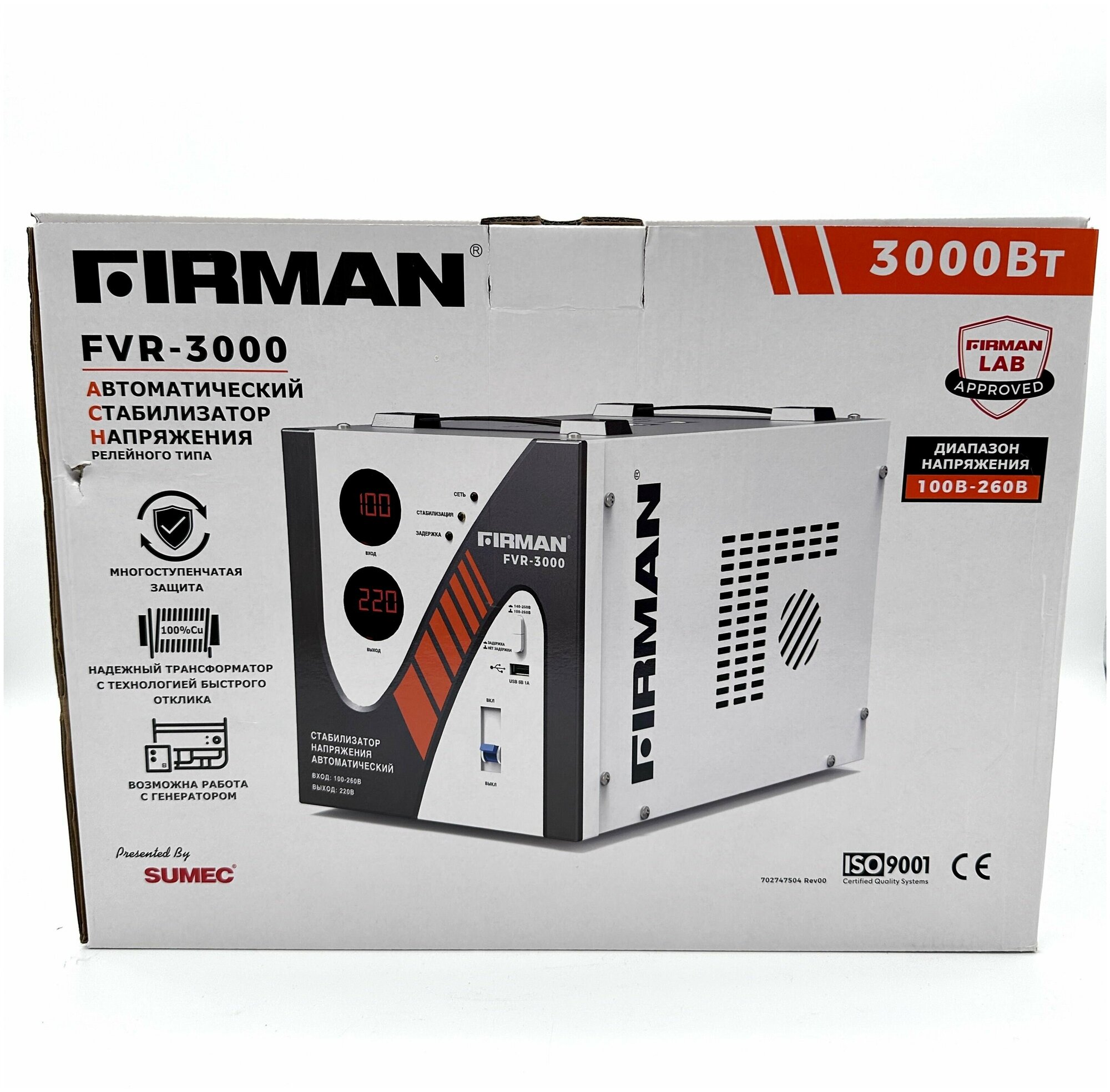 Стабилизатор напряжения FIRMAN FVR-3000 3кВт, 100-260В, USB, напольный интересное: